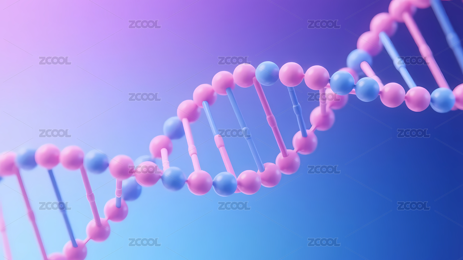 粉色毛绒DNA双螺旋与蓝紫渐变