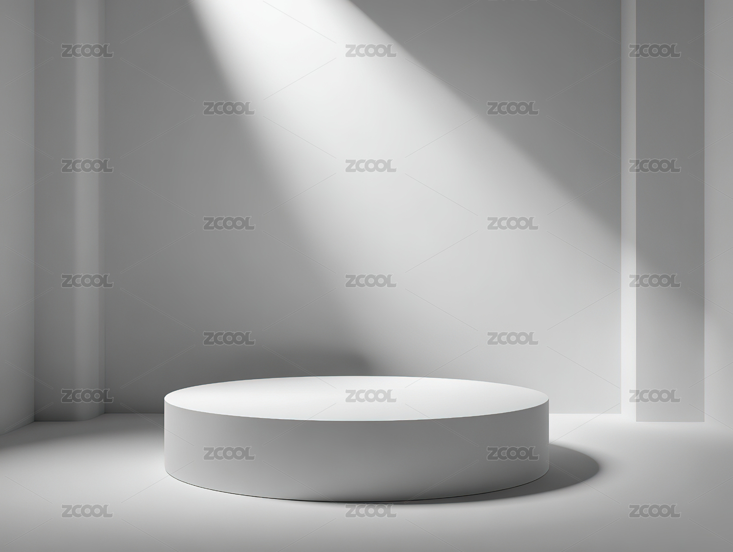 极简主义白色空间中的圆形展台