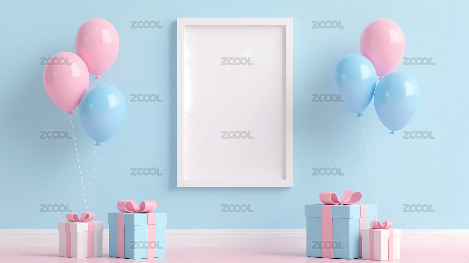 空白相框粉蓝气球