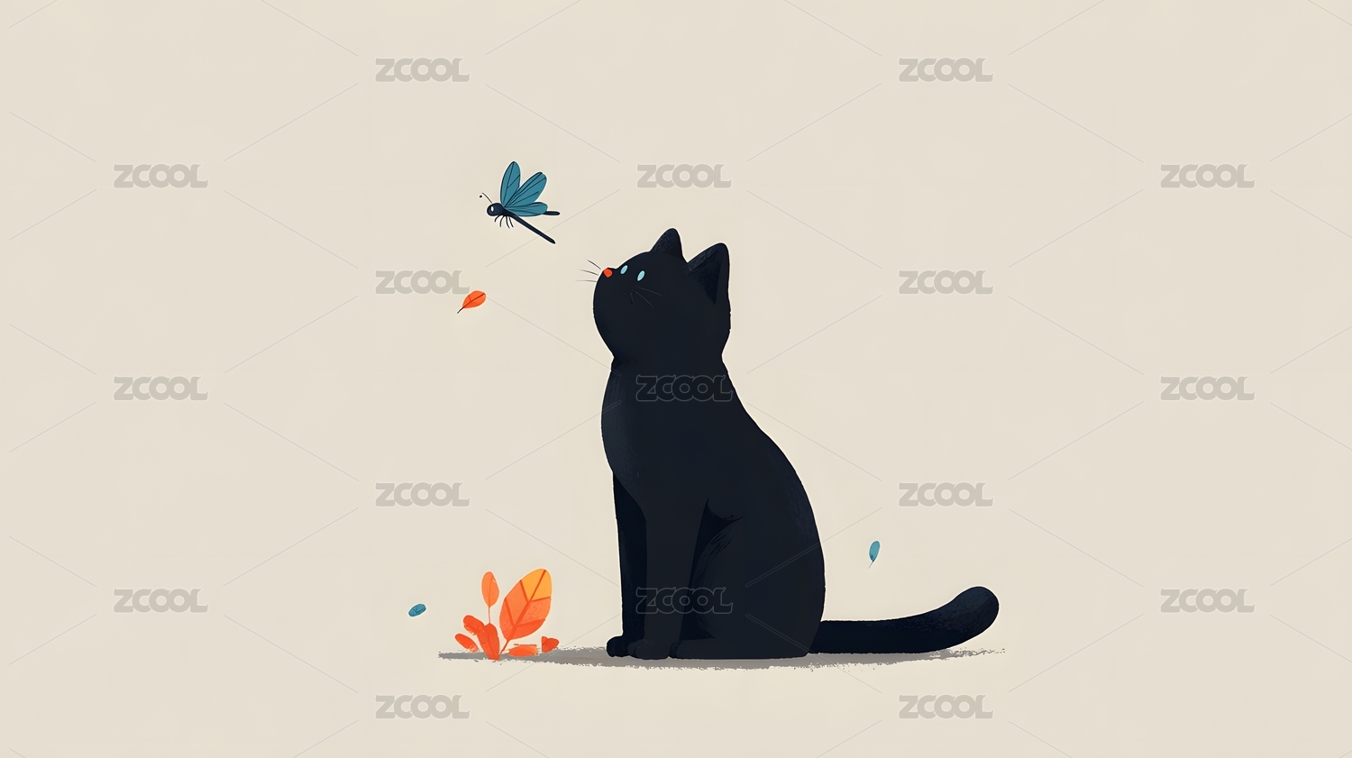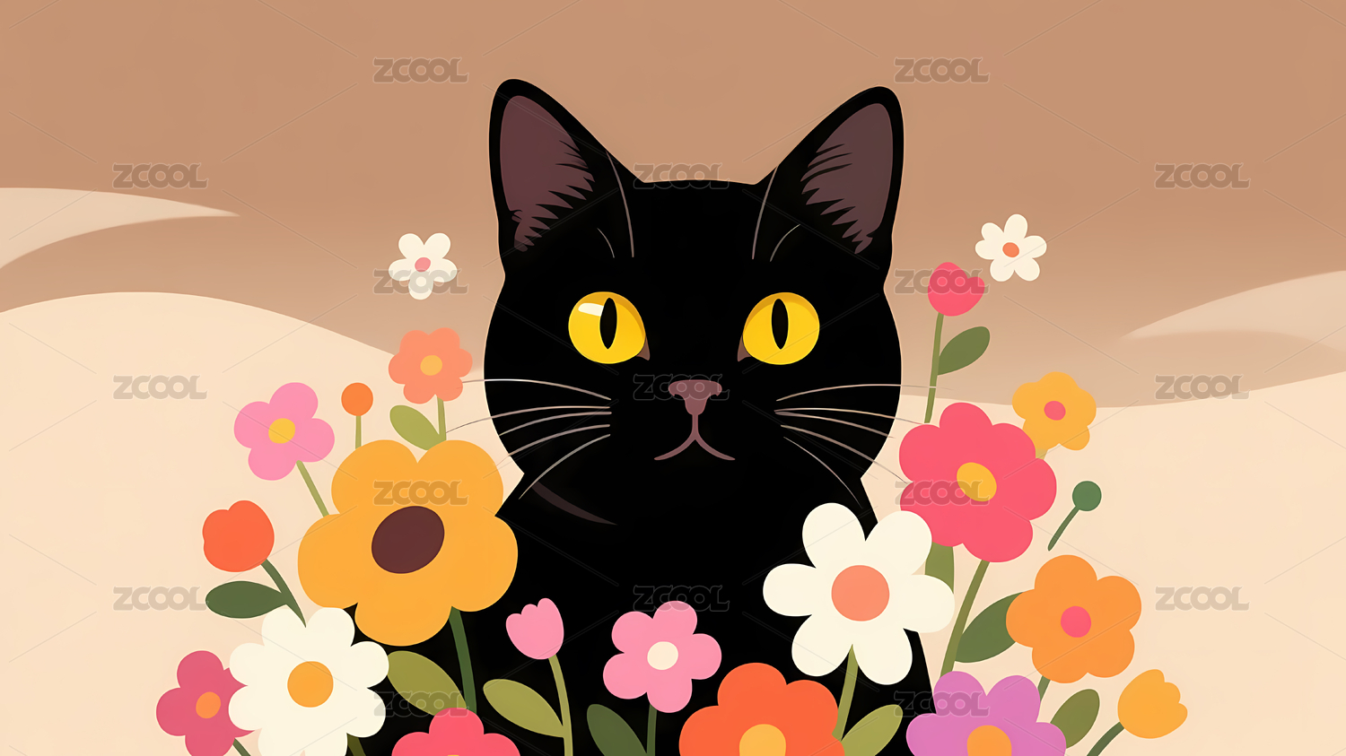 艺术,花朵,设计,光影,背景,简约,自然,橙色,黑猫,插画