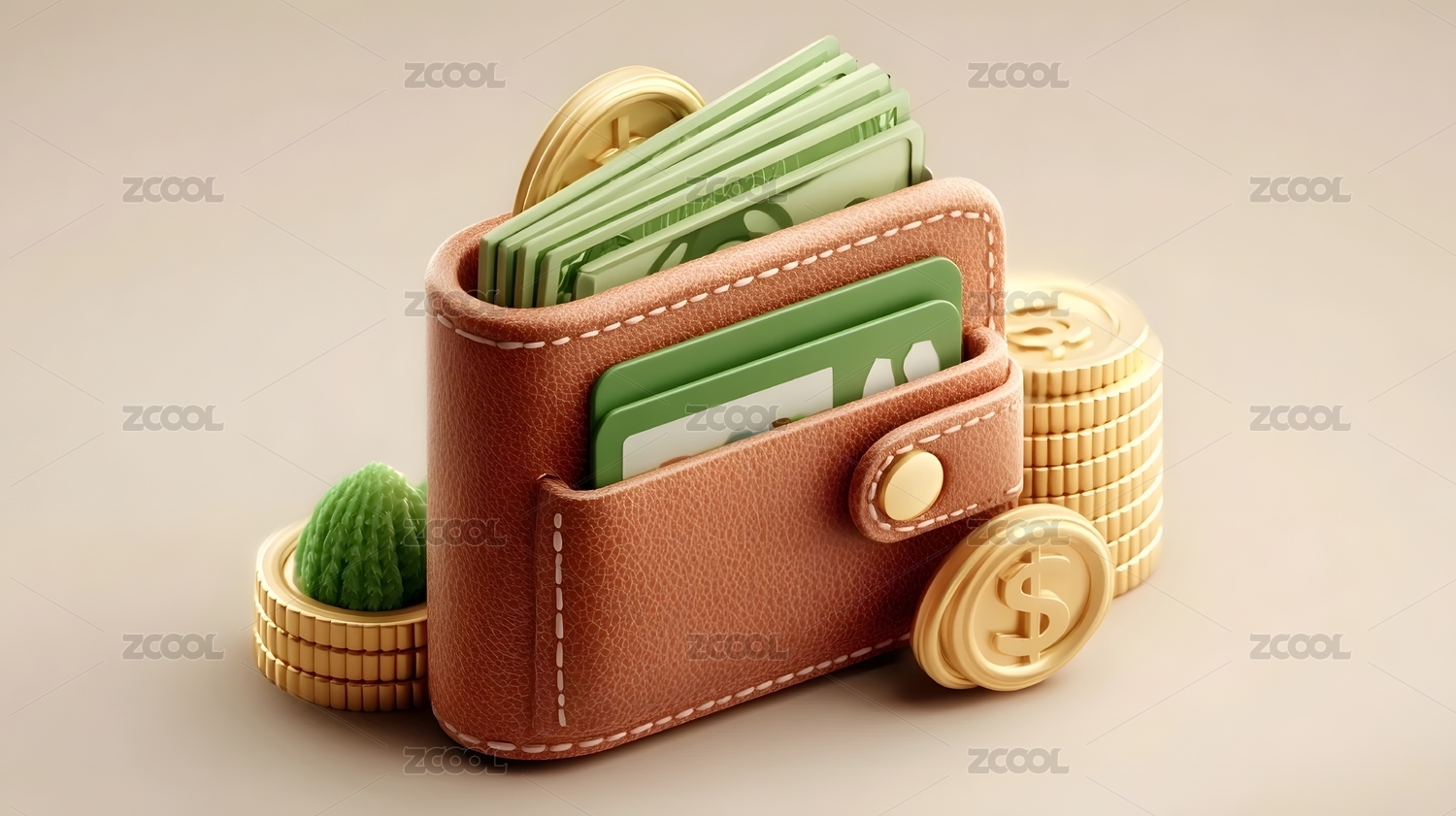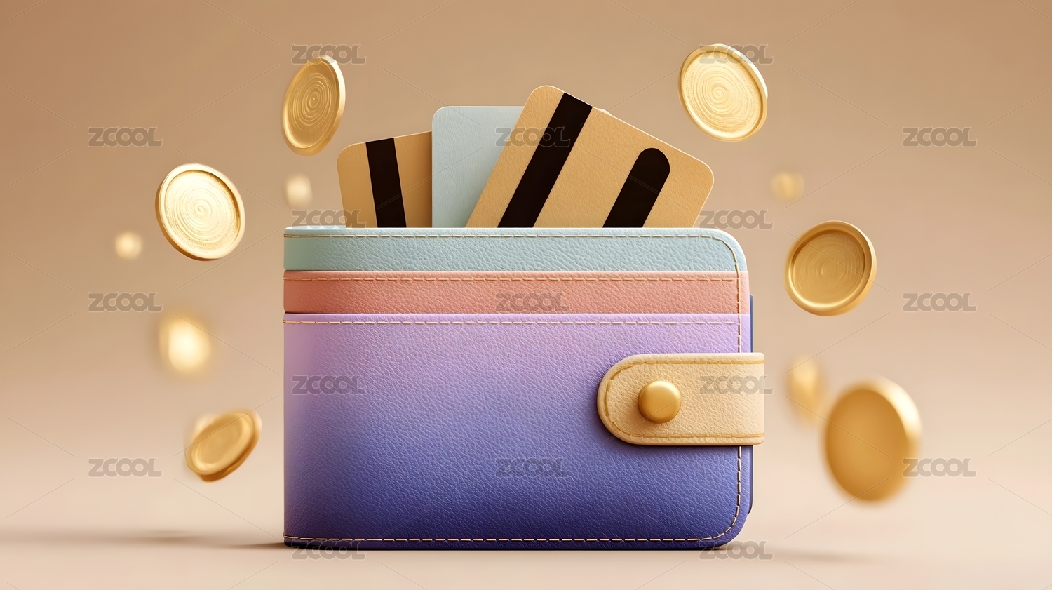 钱包卡片与金币