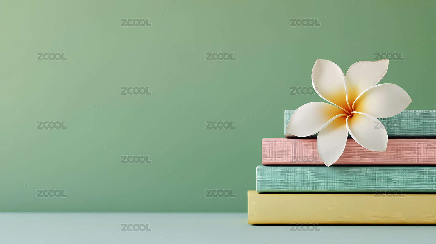 书本与鸡蛋花的温馨静物展示