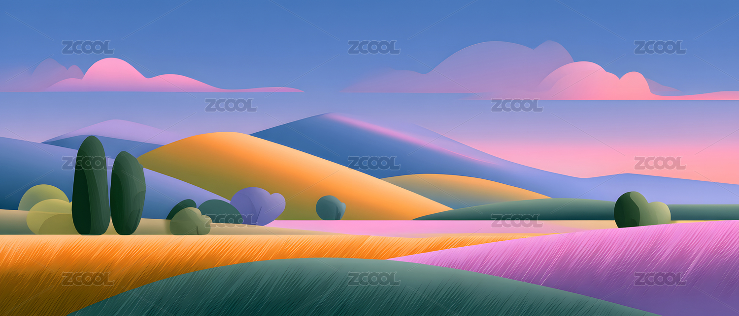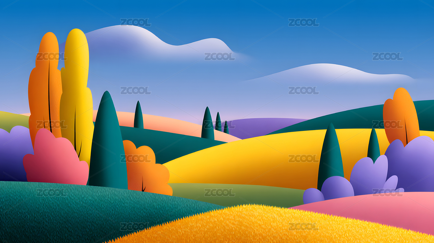 立秋节气户外旅行自然风景处暑卡通唯美插画