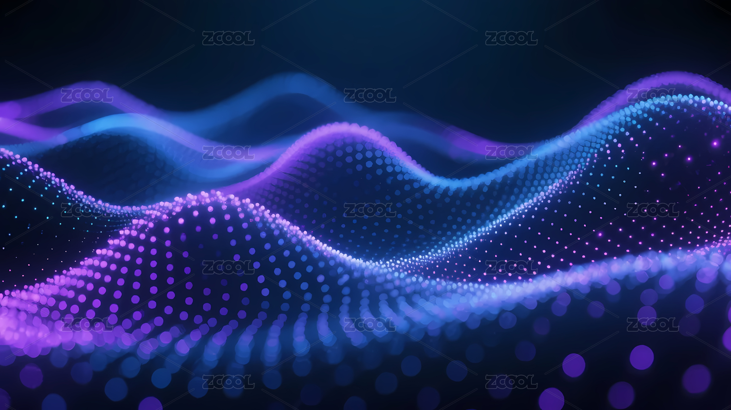 蓝紫波浪点阵展现动态科技感