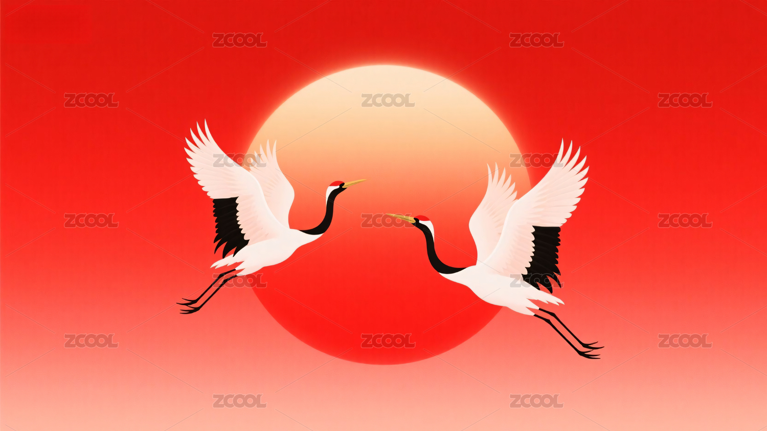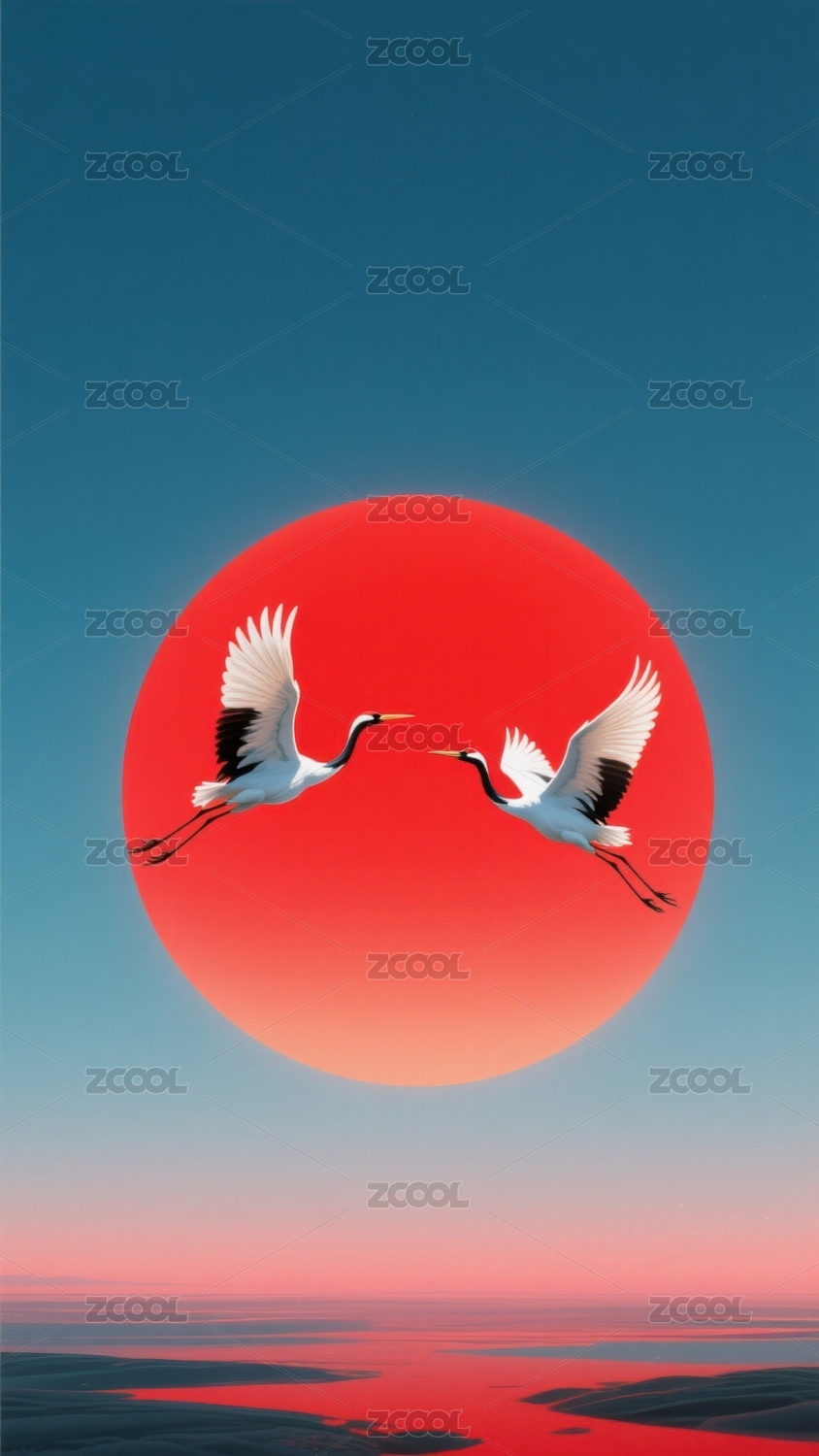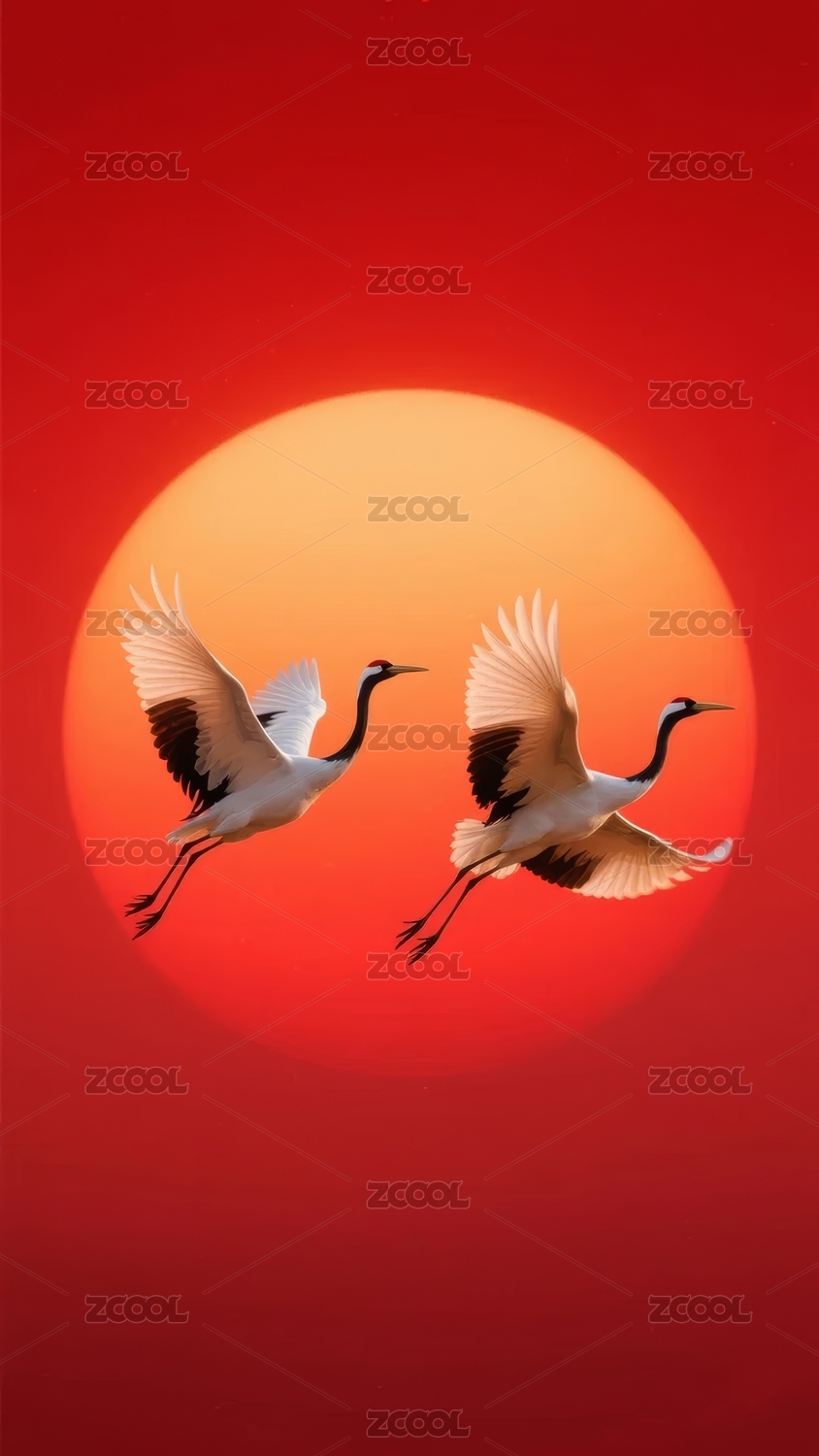 节日,重阳节,飞舞,仙鹤,天空,金色,太阳,梦幻,唯美,鸟类