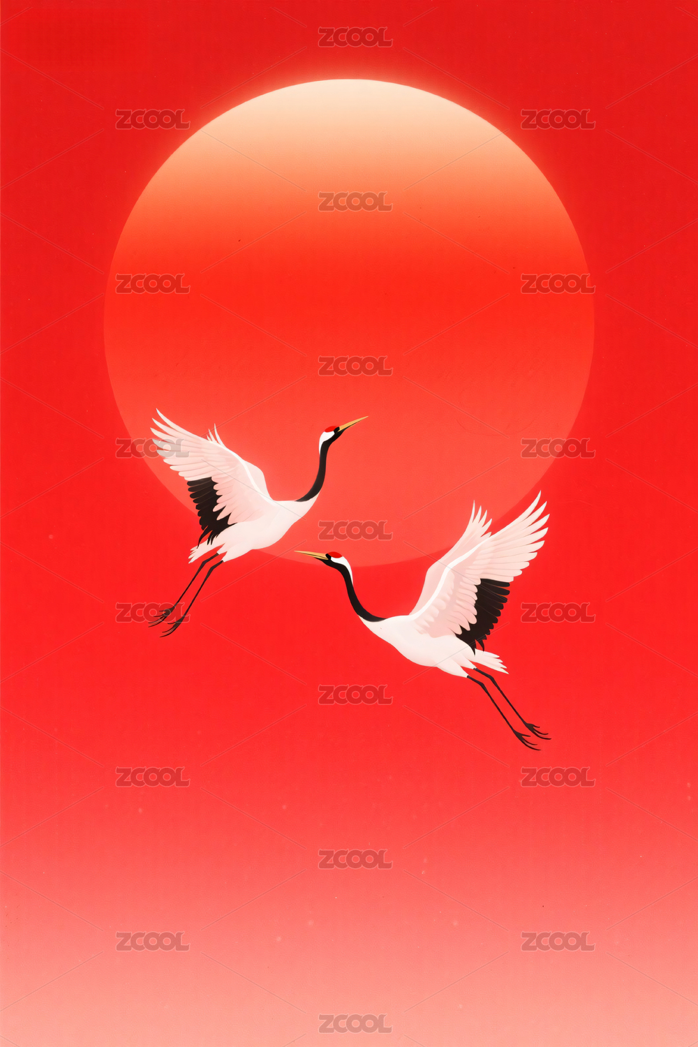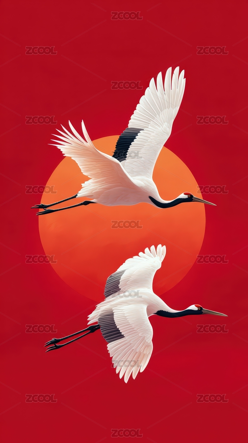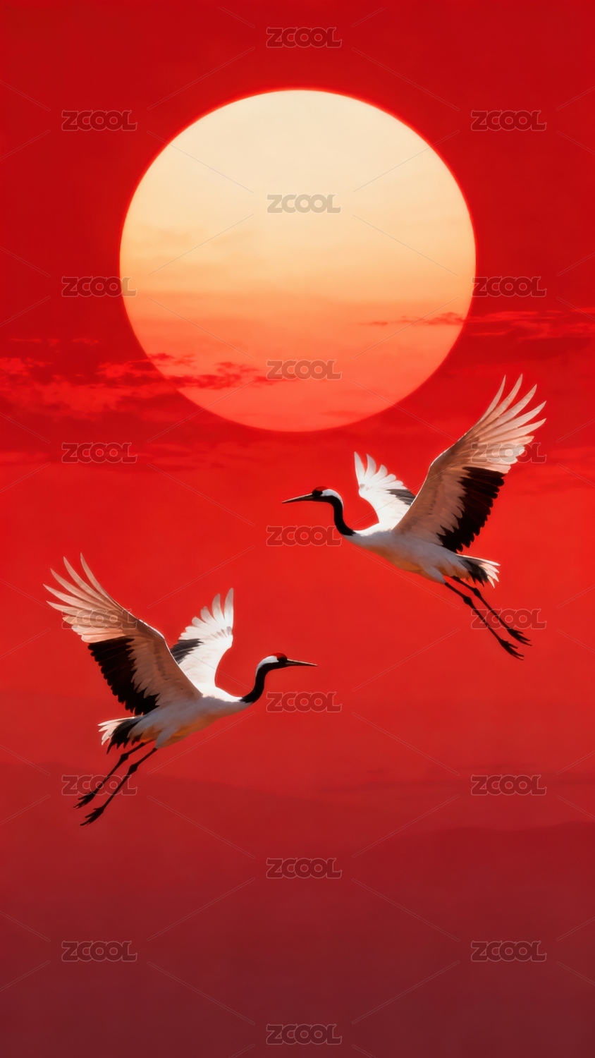 节日,重阳节,飞舞,仙鹤,天空,金色,太阳,梦幻,唯美,鸟类