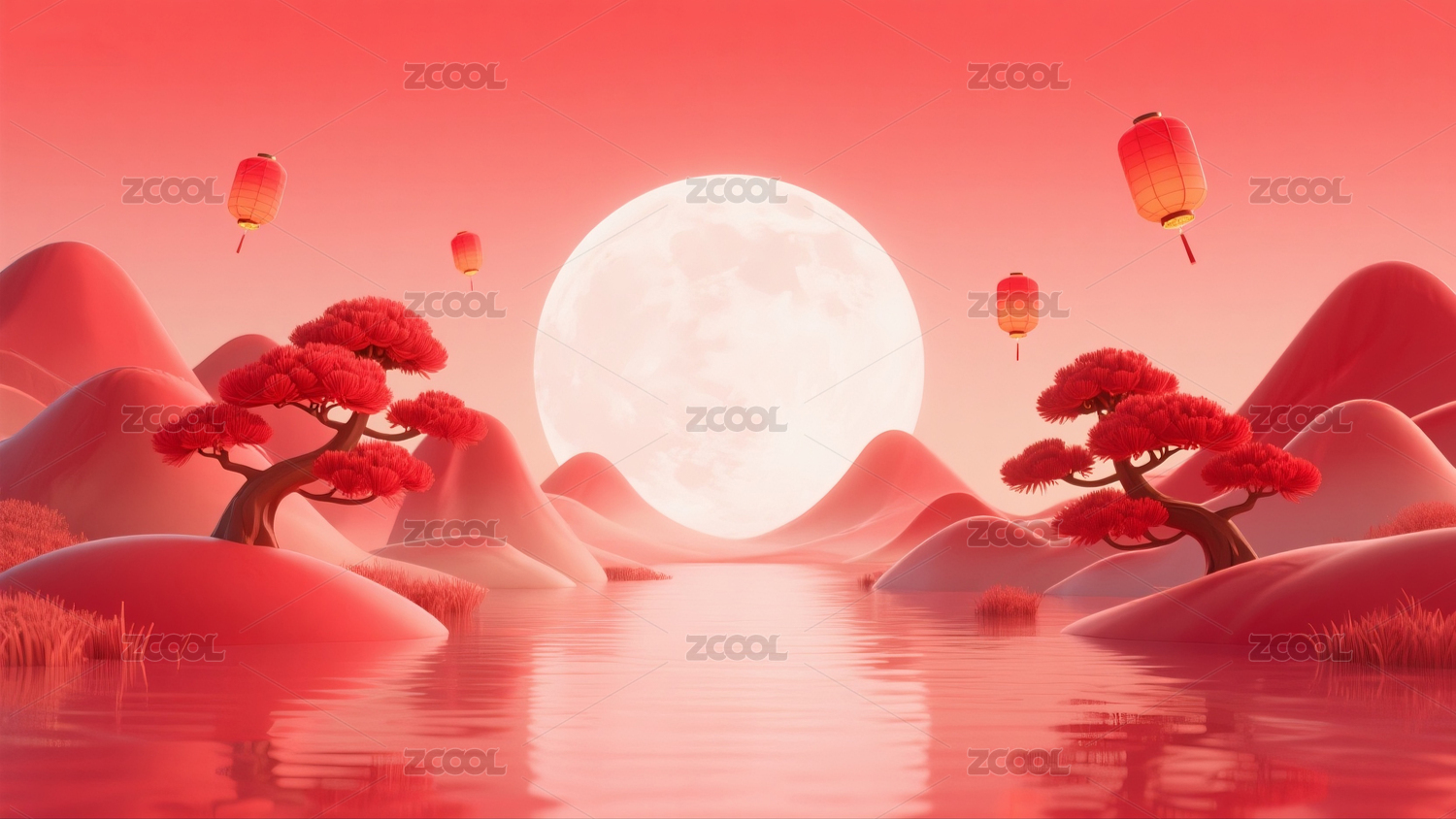 国庆中秋国风展台插画