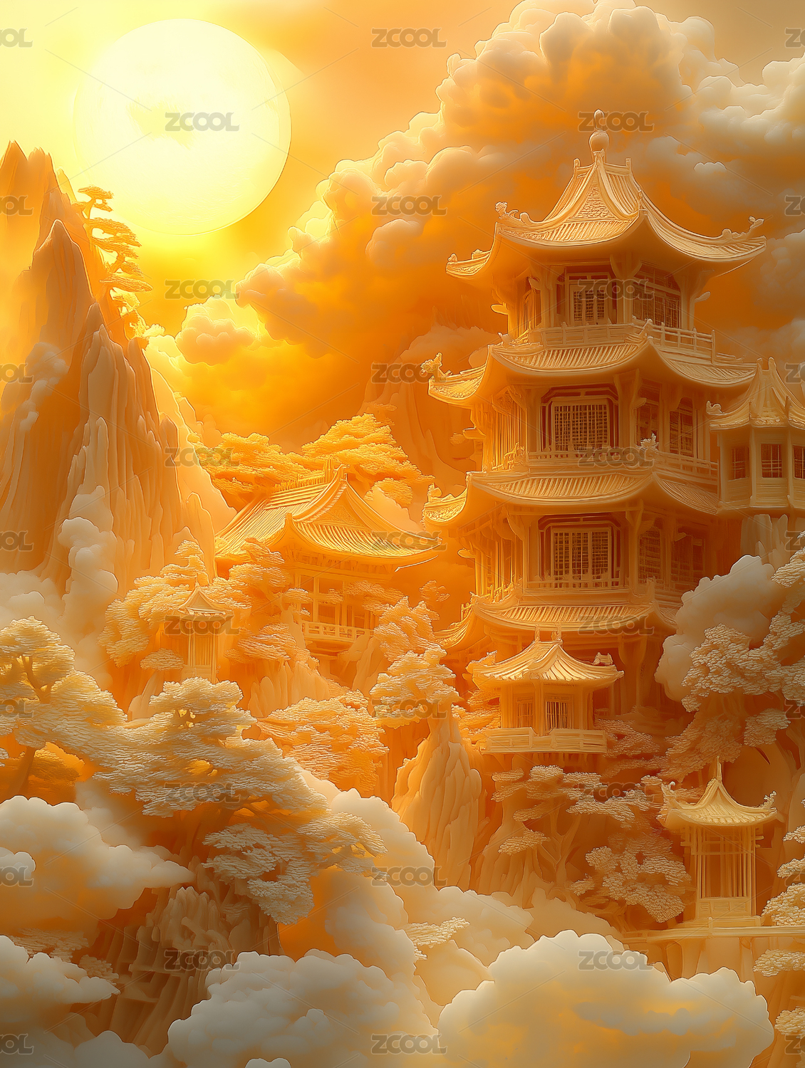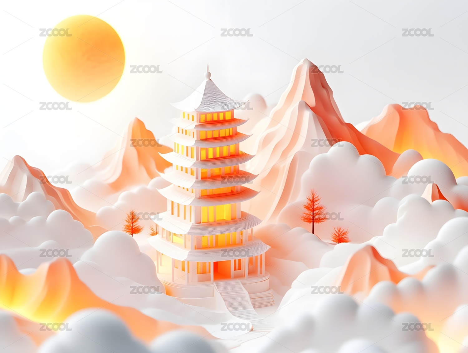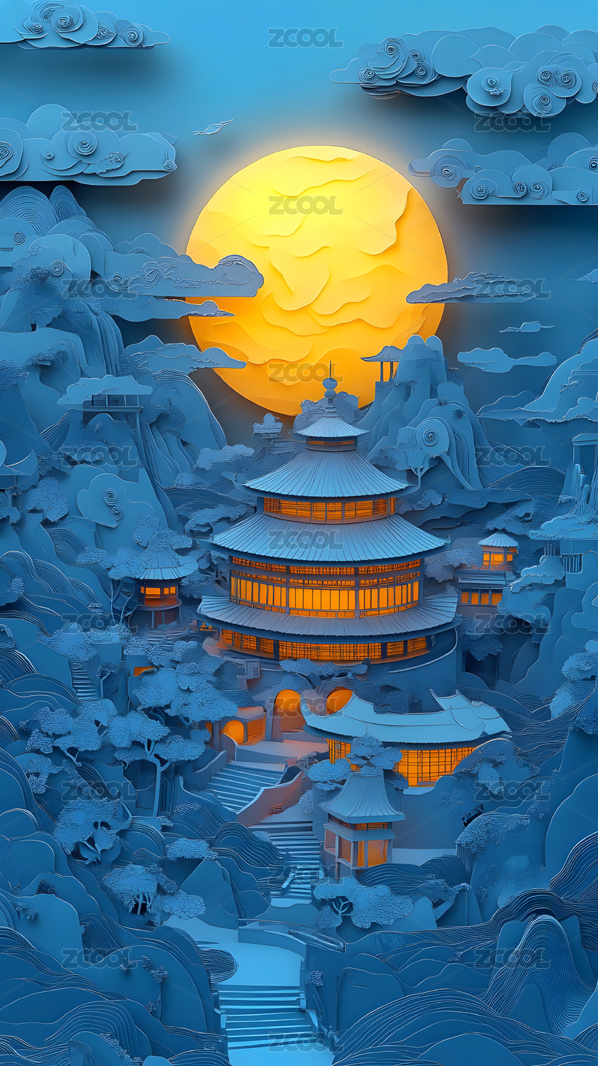 古风,建筑,插画,中国风,背景,剪纸风,古建筑,国风,风景,传统