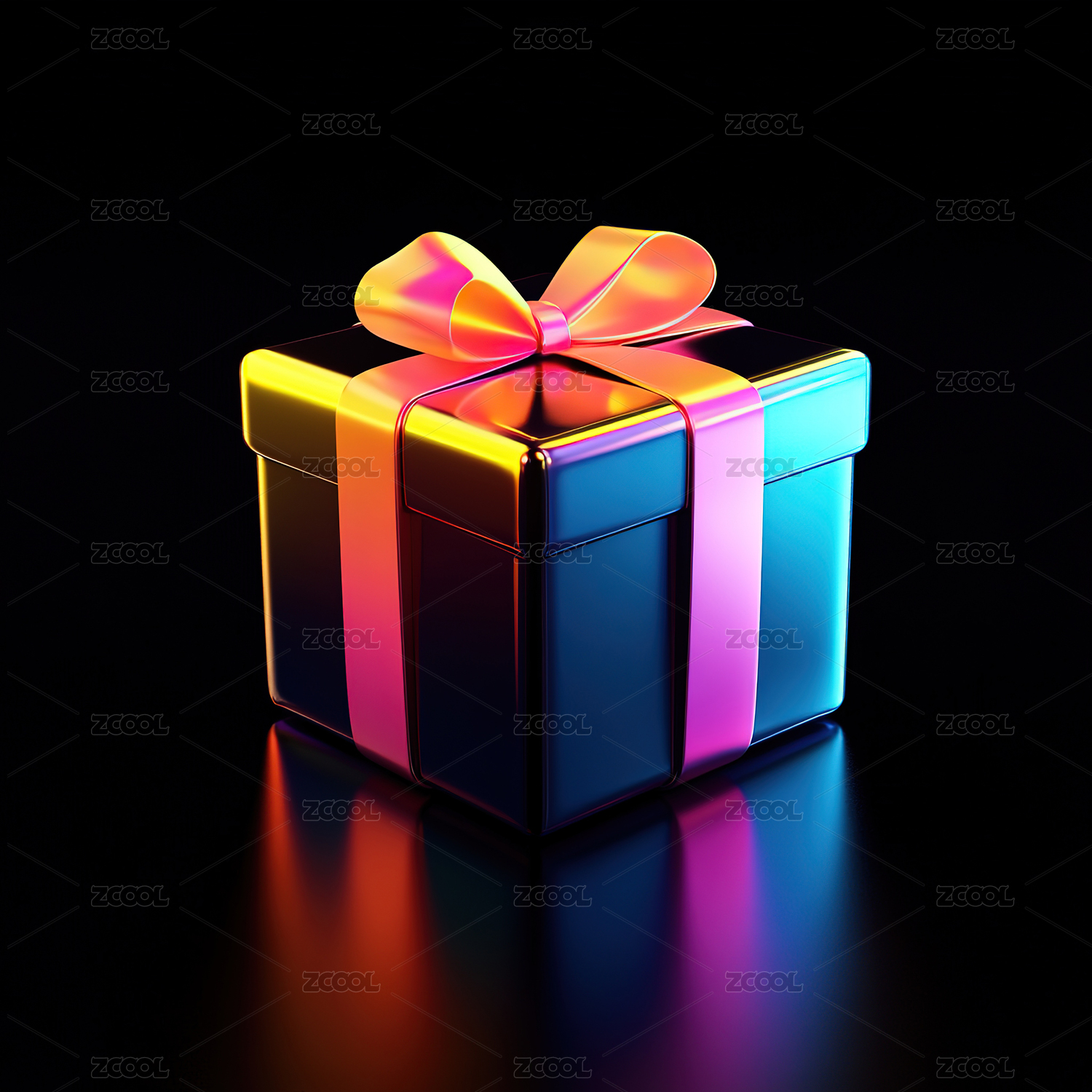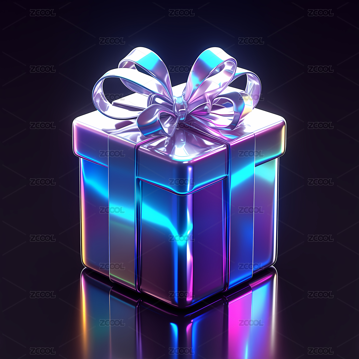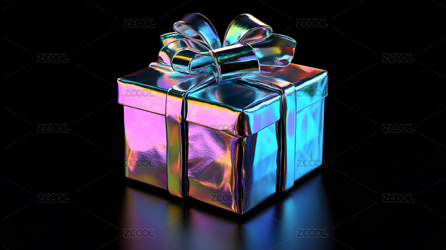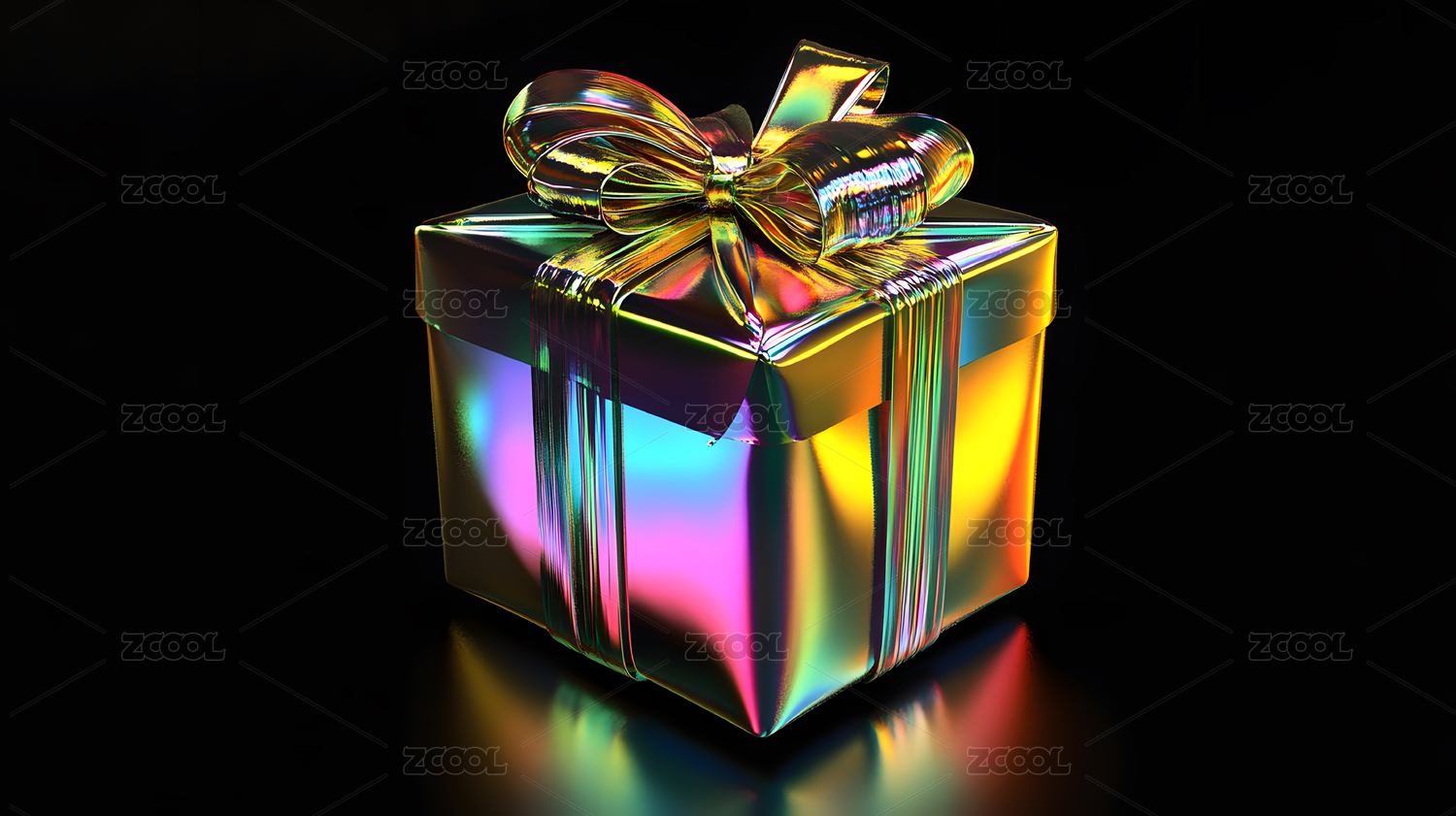 炫彩时尚礼盒全息色彩3D插画