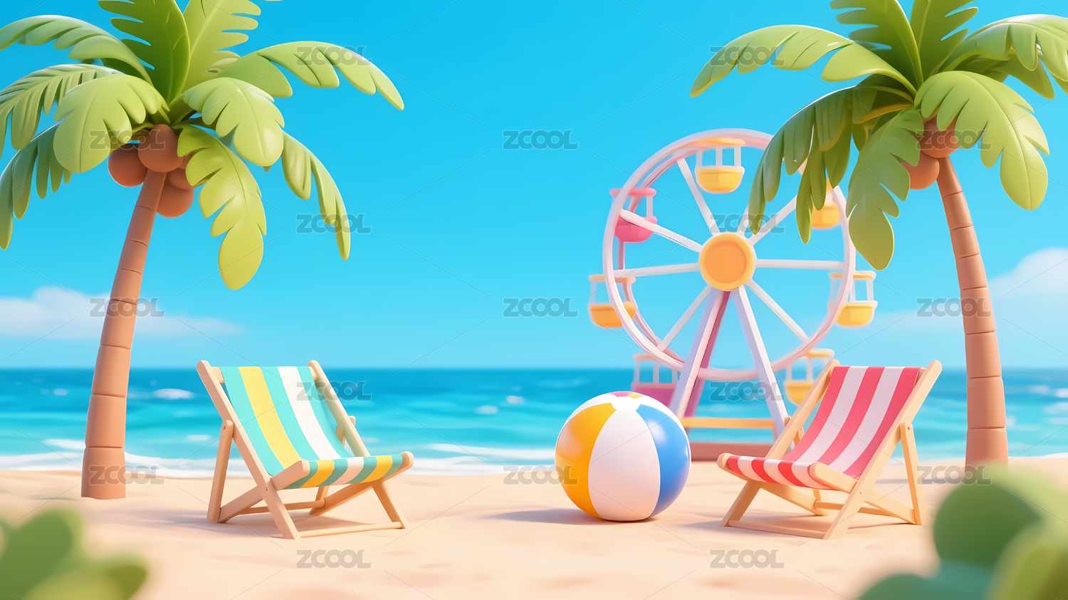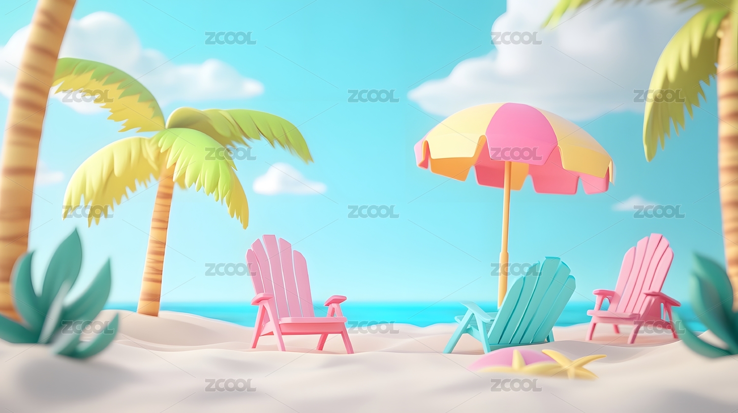 C4D建模夏天沙滩躺椅遮阳伞休闲乘凉