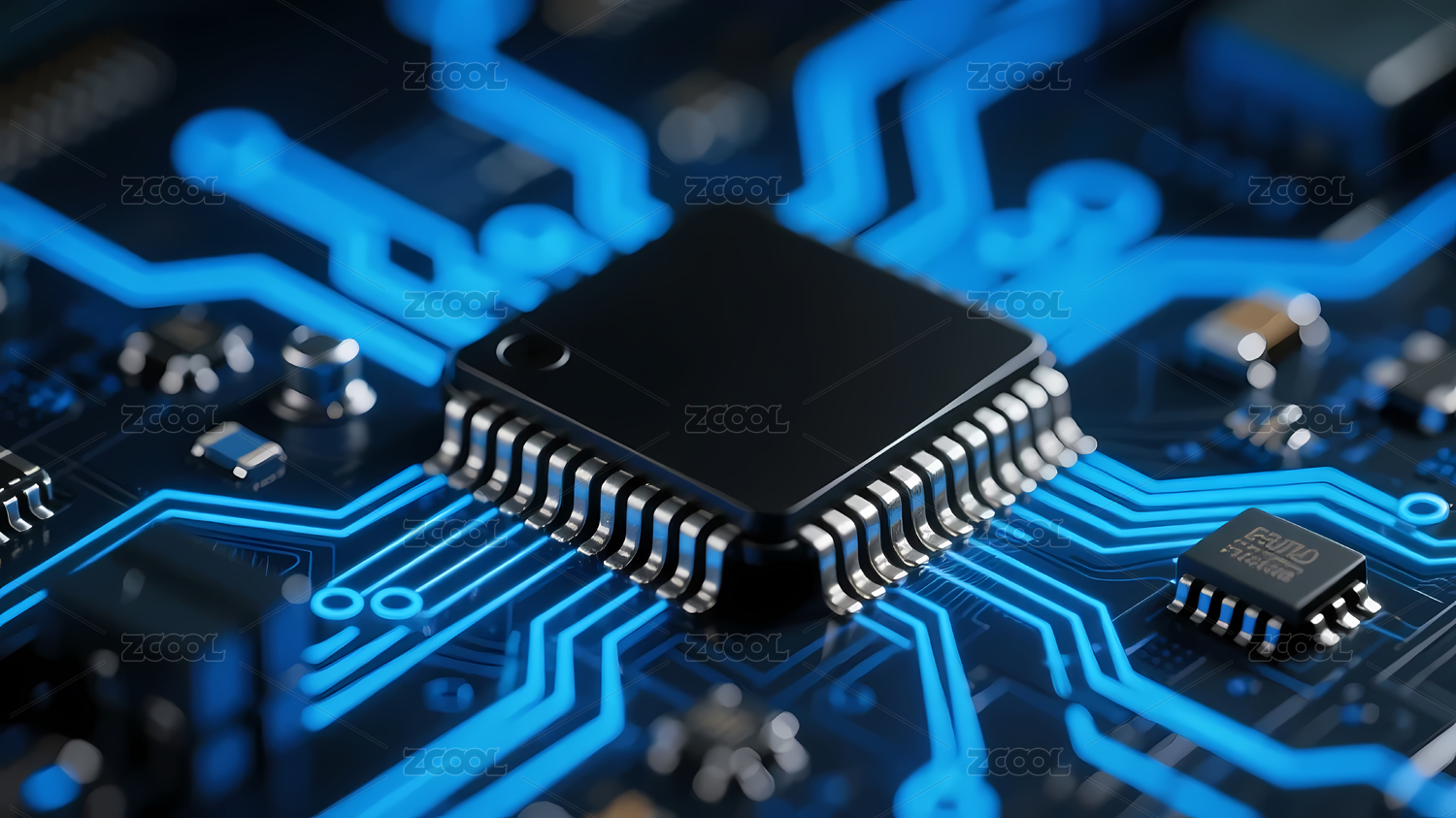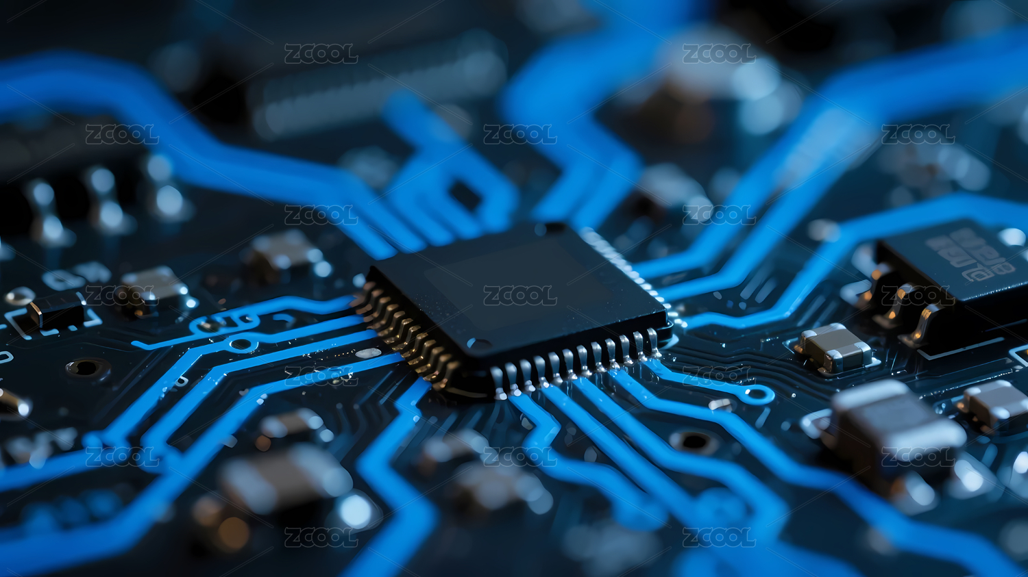 黑芯片蓝色线路图