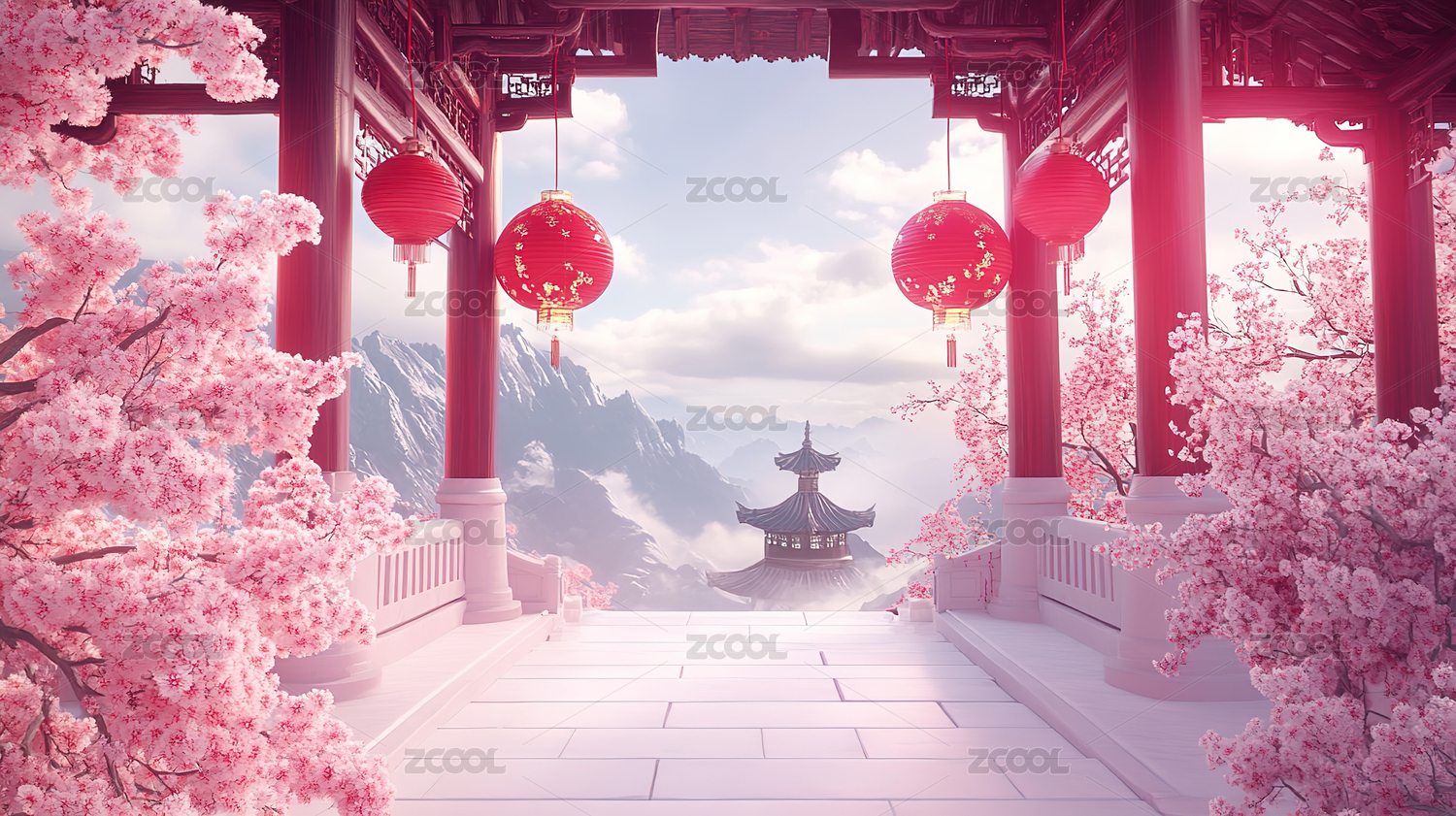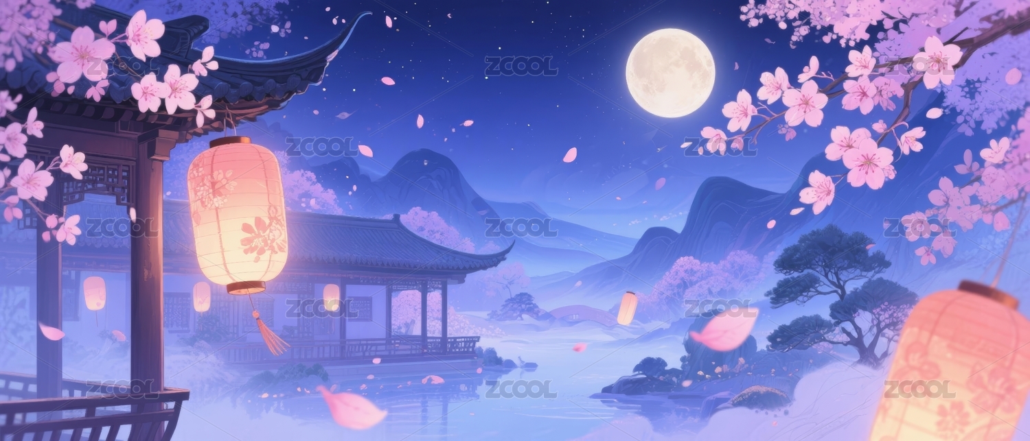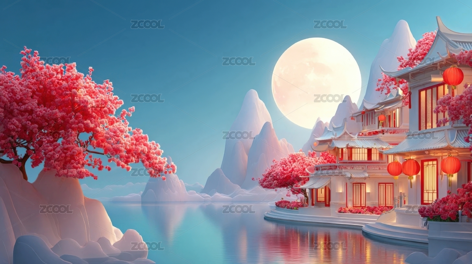 古风,山水,中国风,中秋节,水墨画,插画,意境,国潮,国风,山水画