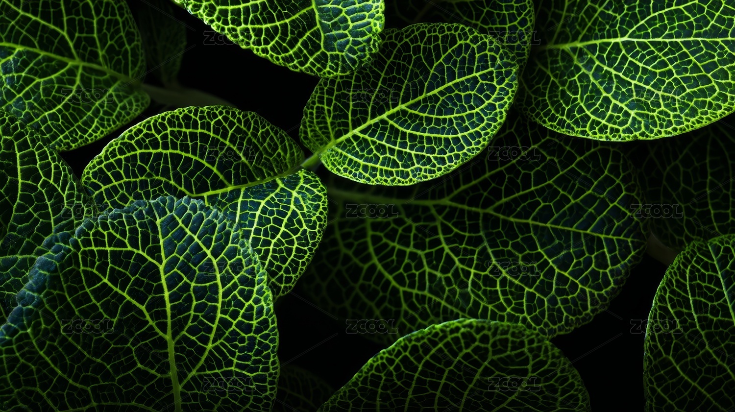 黑色,绿色,清新,植物,生机,叶子,脉络,荧光,清晰,鲜明