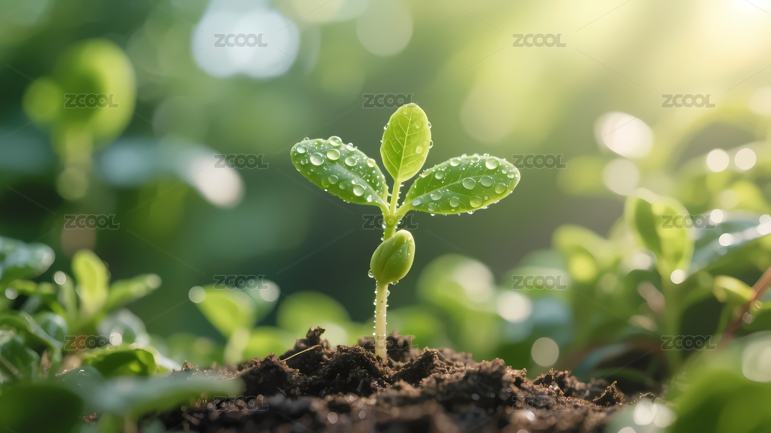 植物,绿色,自然,清新,光斑,模糊,小苗,水珠,阳光,生长