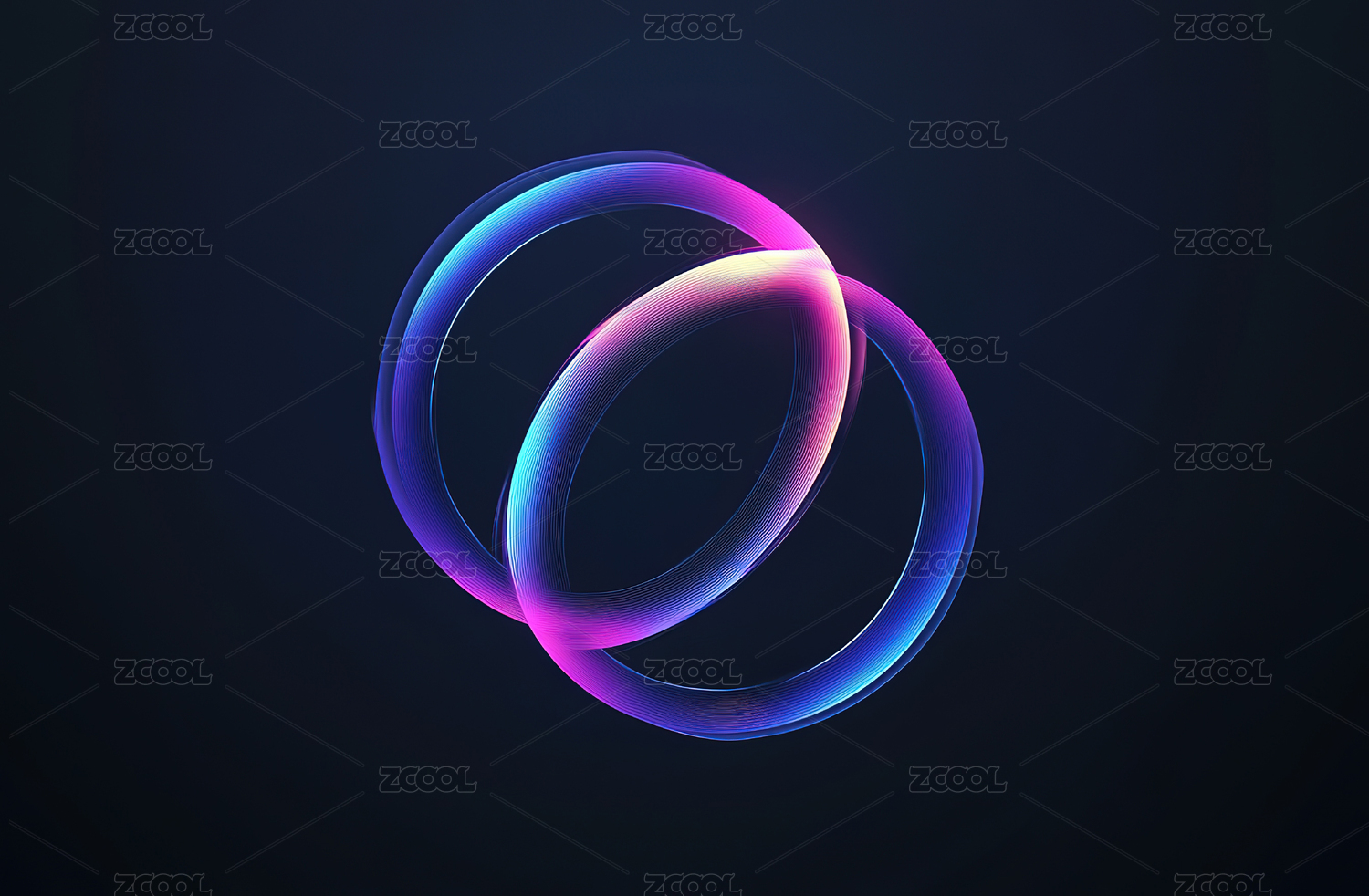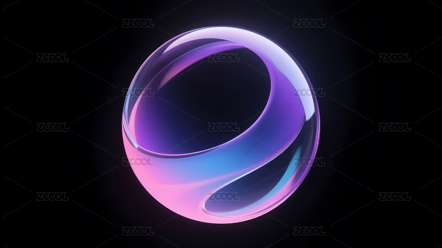 彩色透明荧光色缠绕晶体圆环3D赛博插画