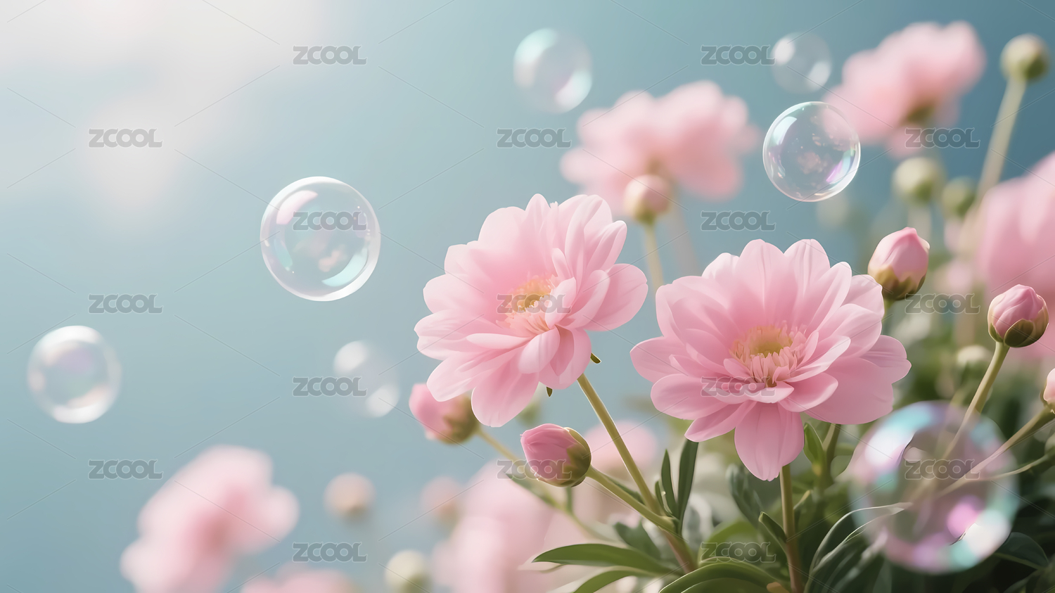 花朵,清新,粉色,渐变,柔和,春天,透明,轻盈,气泡,淡雅
