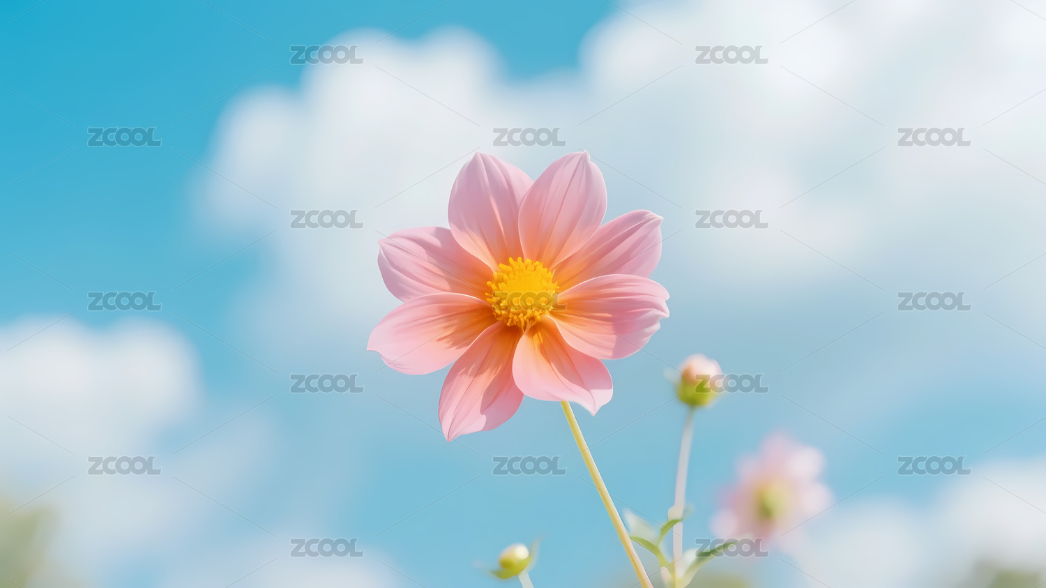 黄色,花朵,色彩,清新,蓝天,白云,粉红色,明亮,春天,花蕊