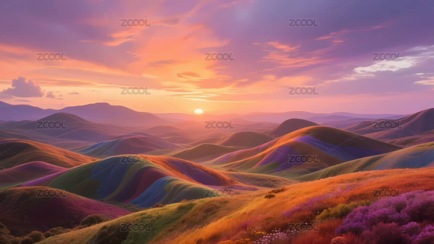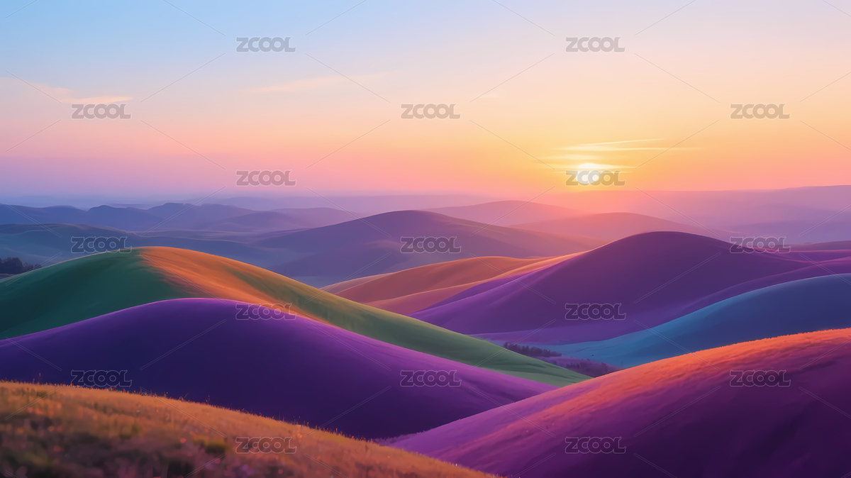 渐变,蓝色,紫色,天空,山丘,橙色,自然,彩色,日落,色彩
