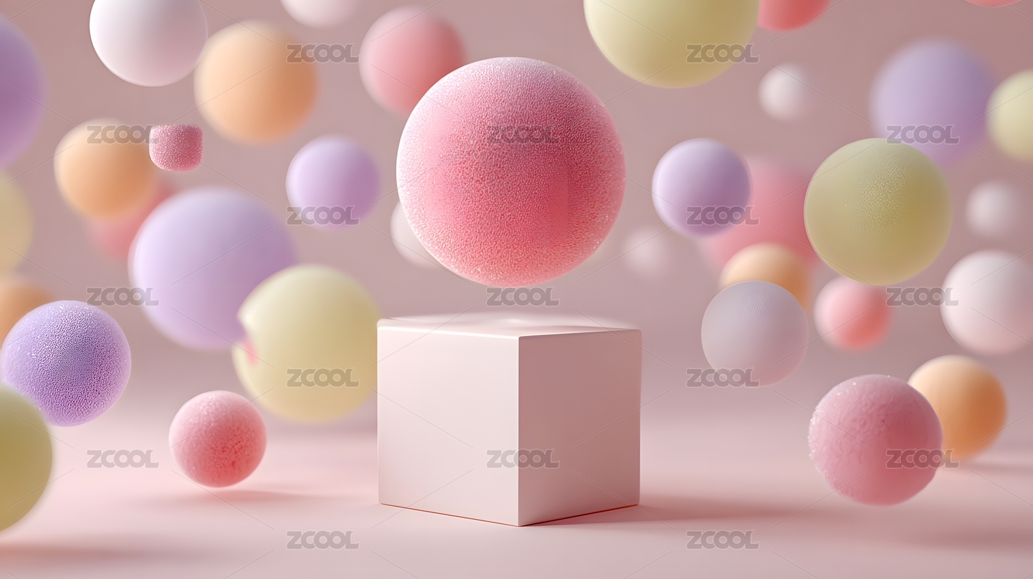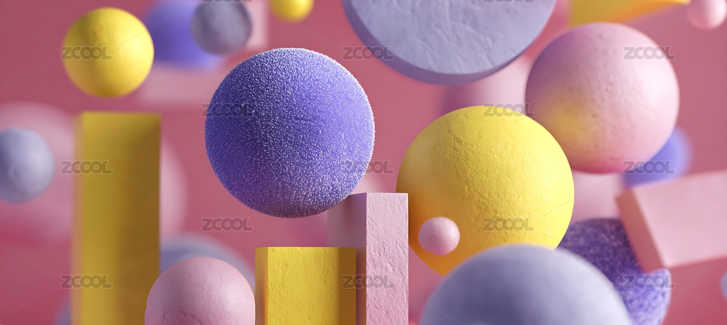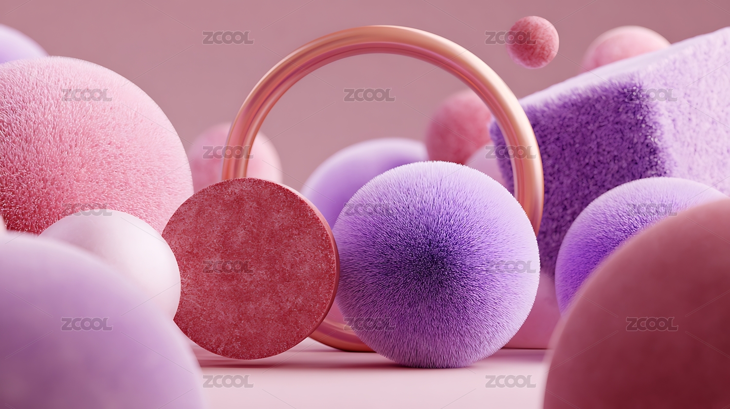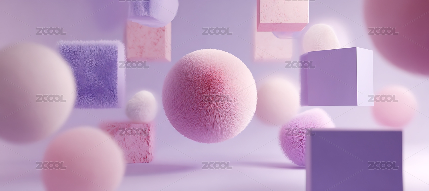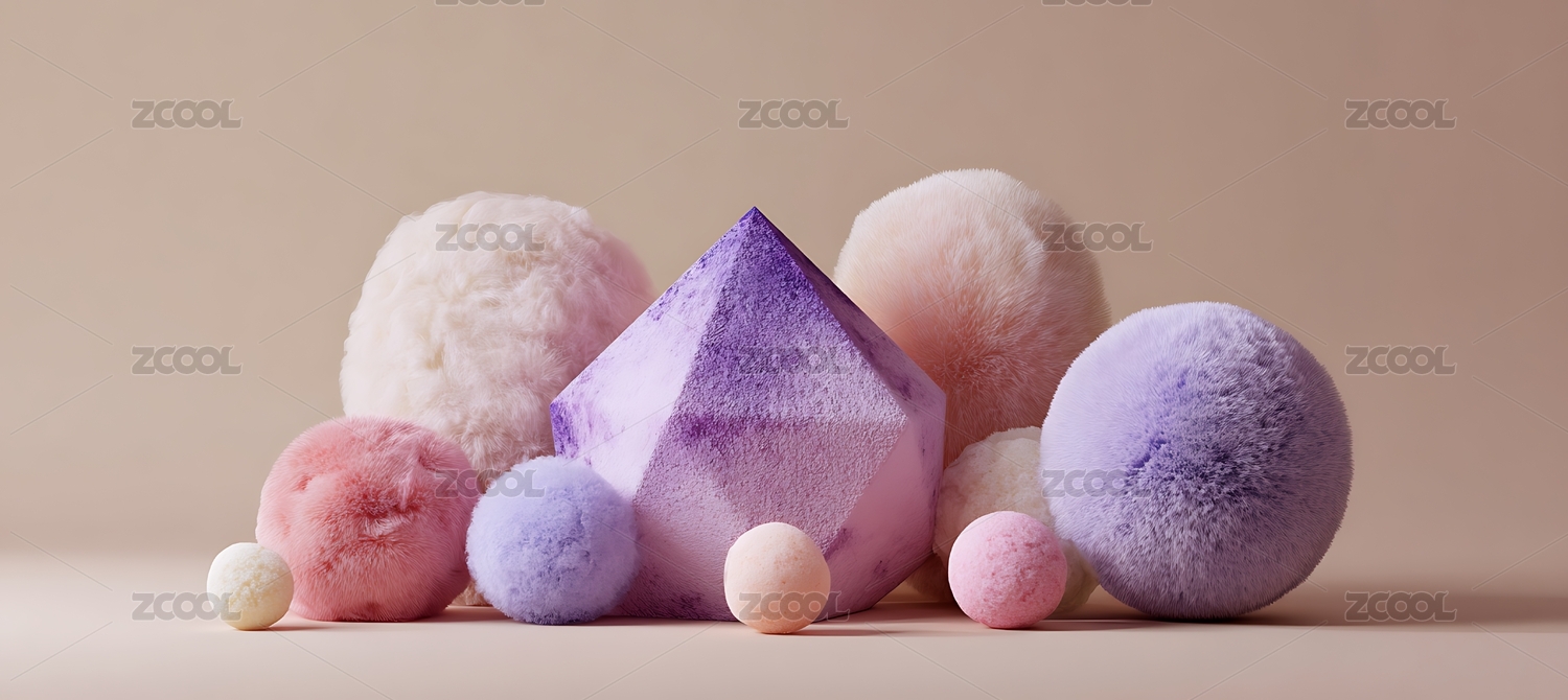 梦幻,毛球,绒球,球体,几何体,粉色,紫色,浅色,柔软,抽象
