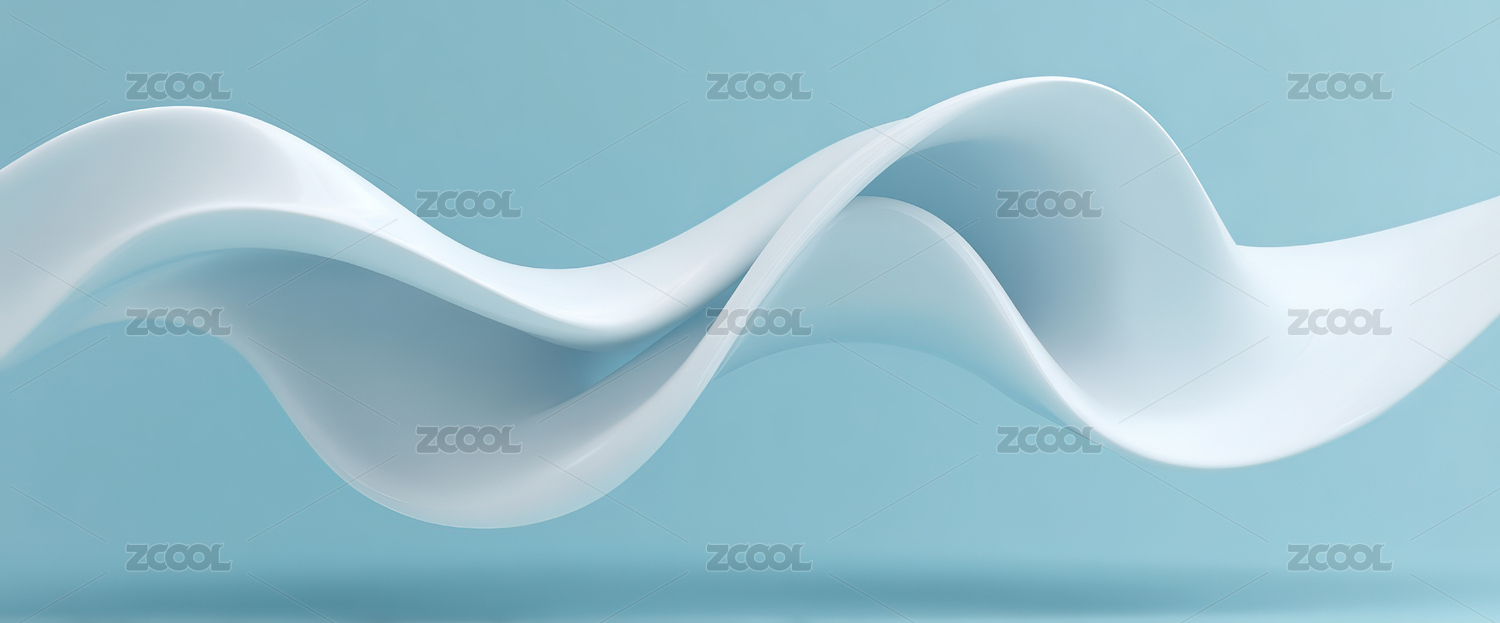 蓝色背景上的白色波浪形物体