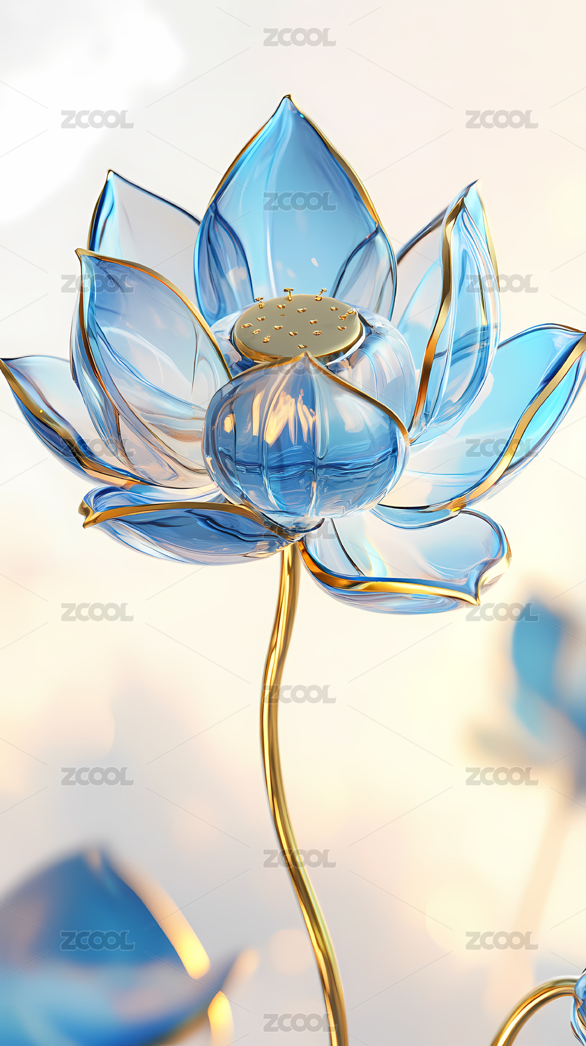 透明玻璃荷花荷叶3D渲染莲花睡莲插画