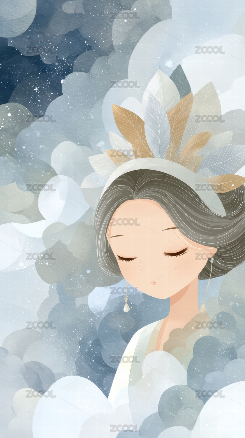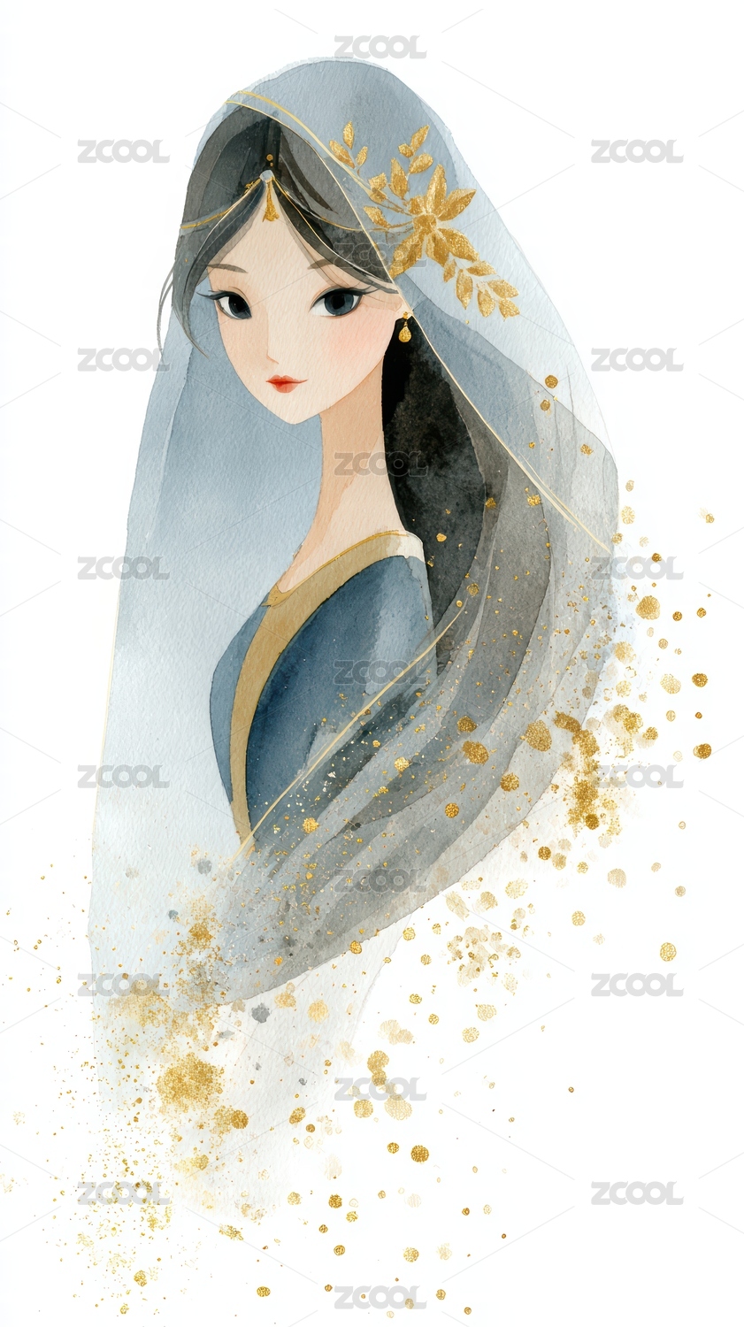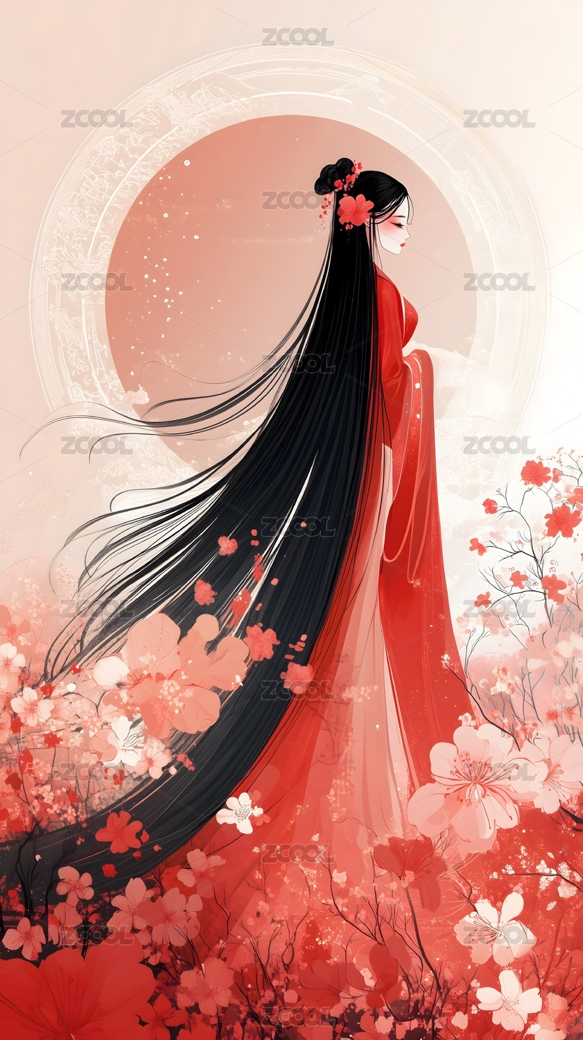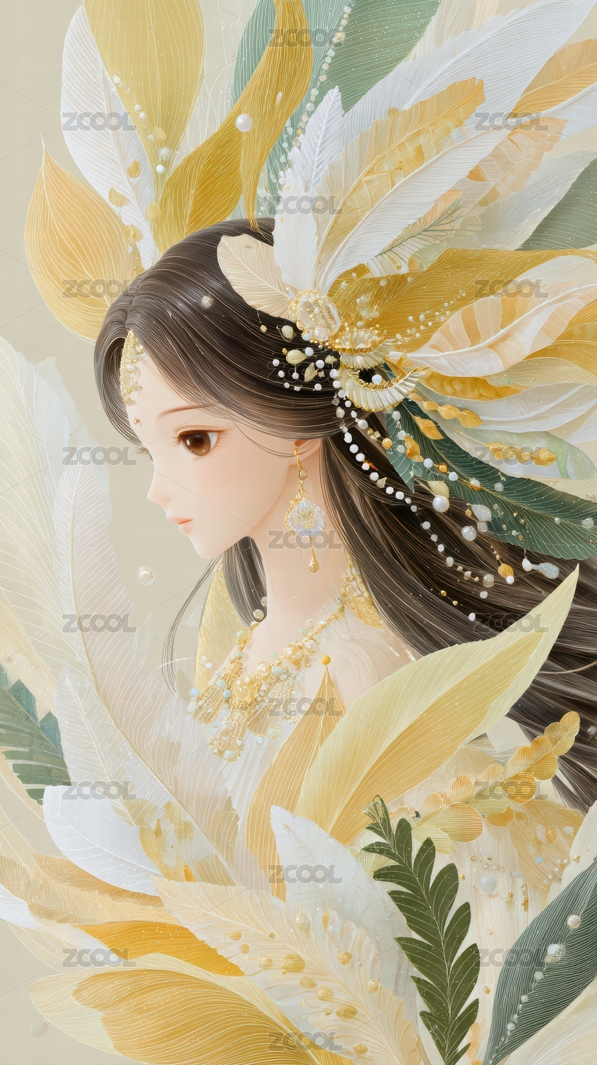 古典,背景,花朵,金箔,仕女,发饰,流苏,耳环,衣裳