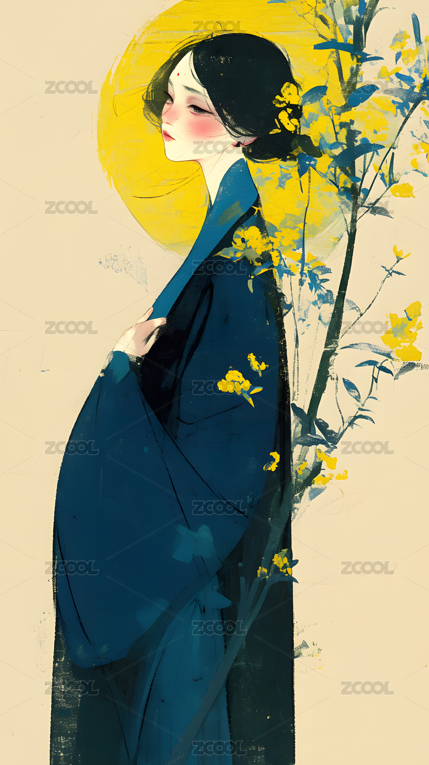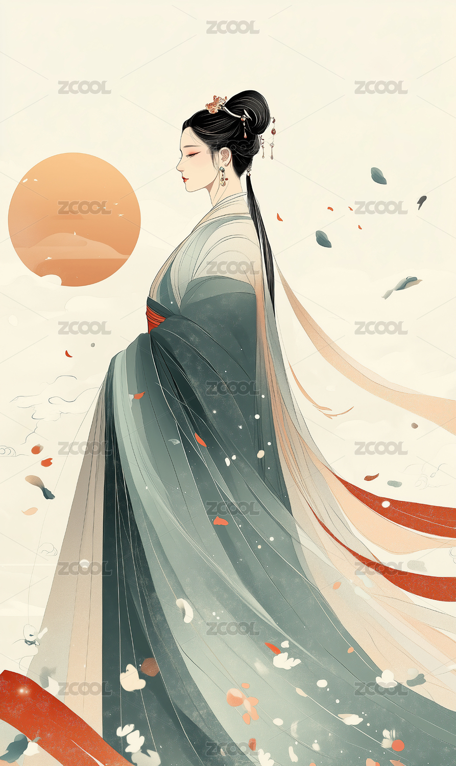 飘带,服饰,背景,金色,女子,古风,优雅,侧影,花簪