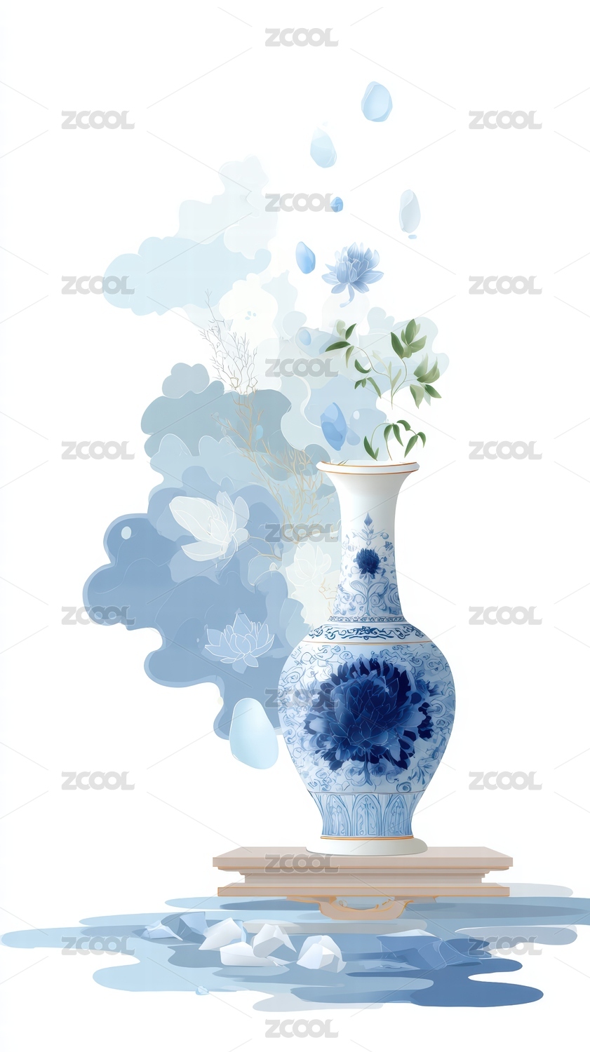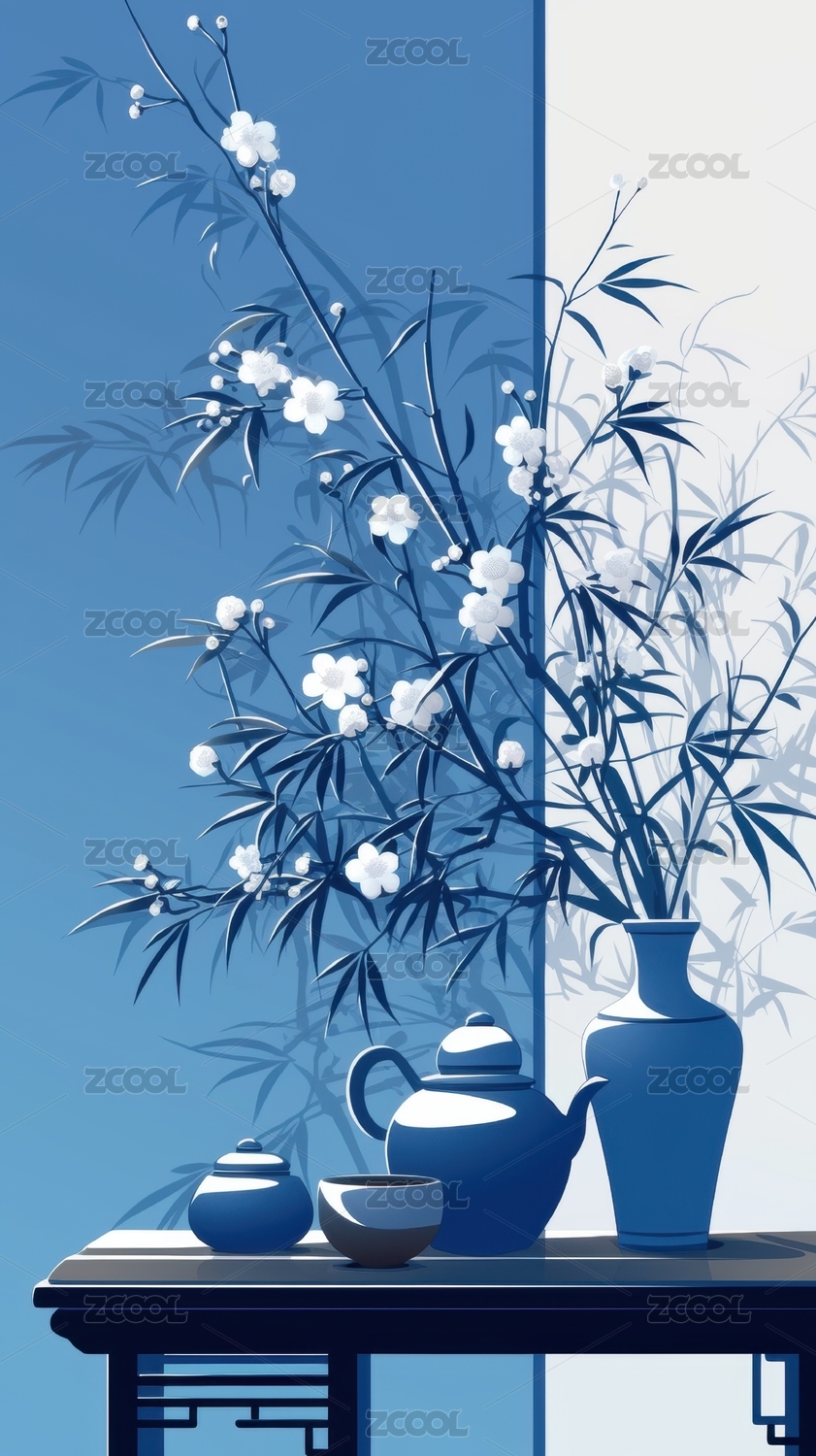 光影,背景,静物,青花,花瓶,装饰,绿植,纹饰