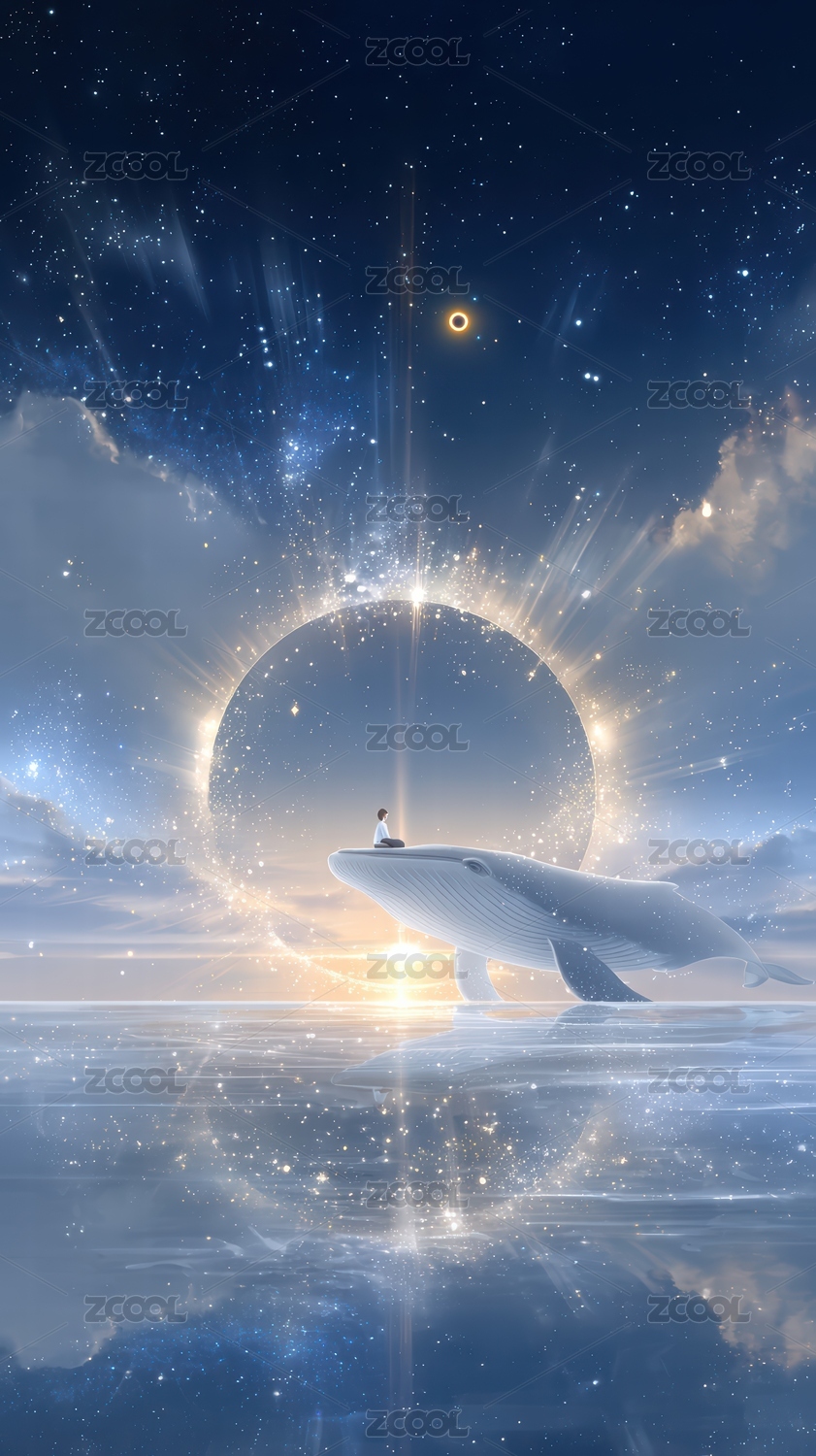 梦幻,倒影,蓝鲸,星河,星球,人物,光辉,宇宙,月光