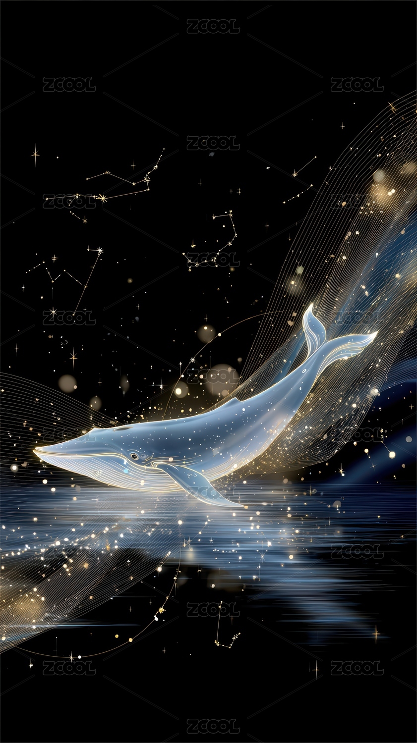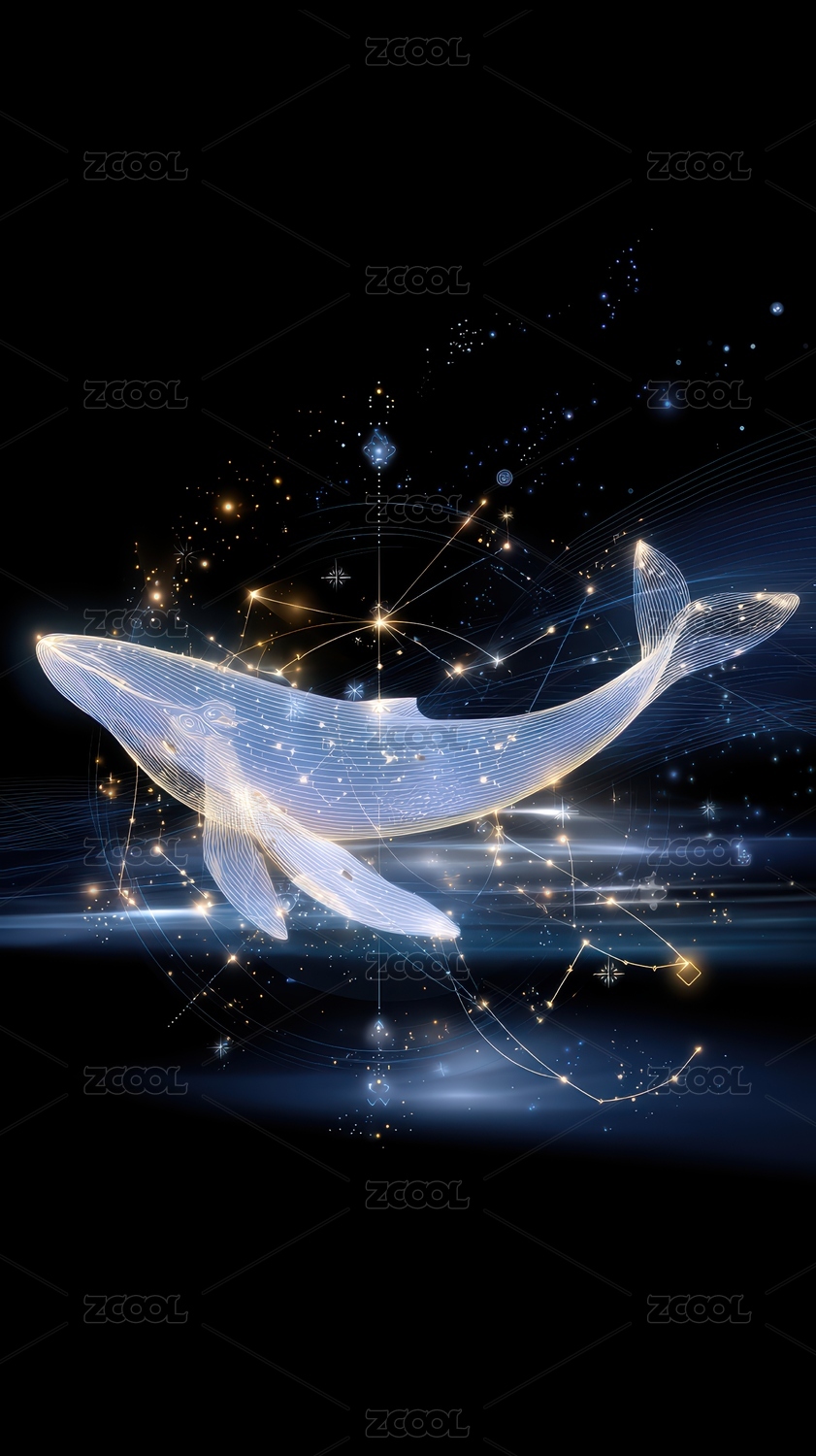 星光闪烁的梦幻鲸鱼艺术图