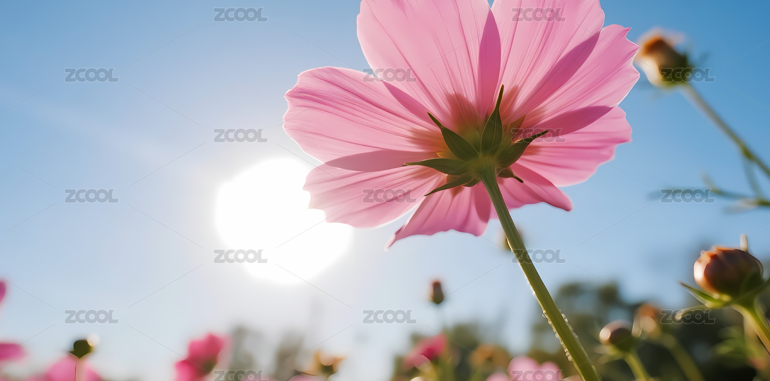 蓝色,粉色,花朵,温暖,柔和,色调,清澈,蓝天,阳光