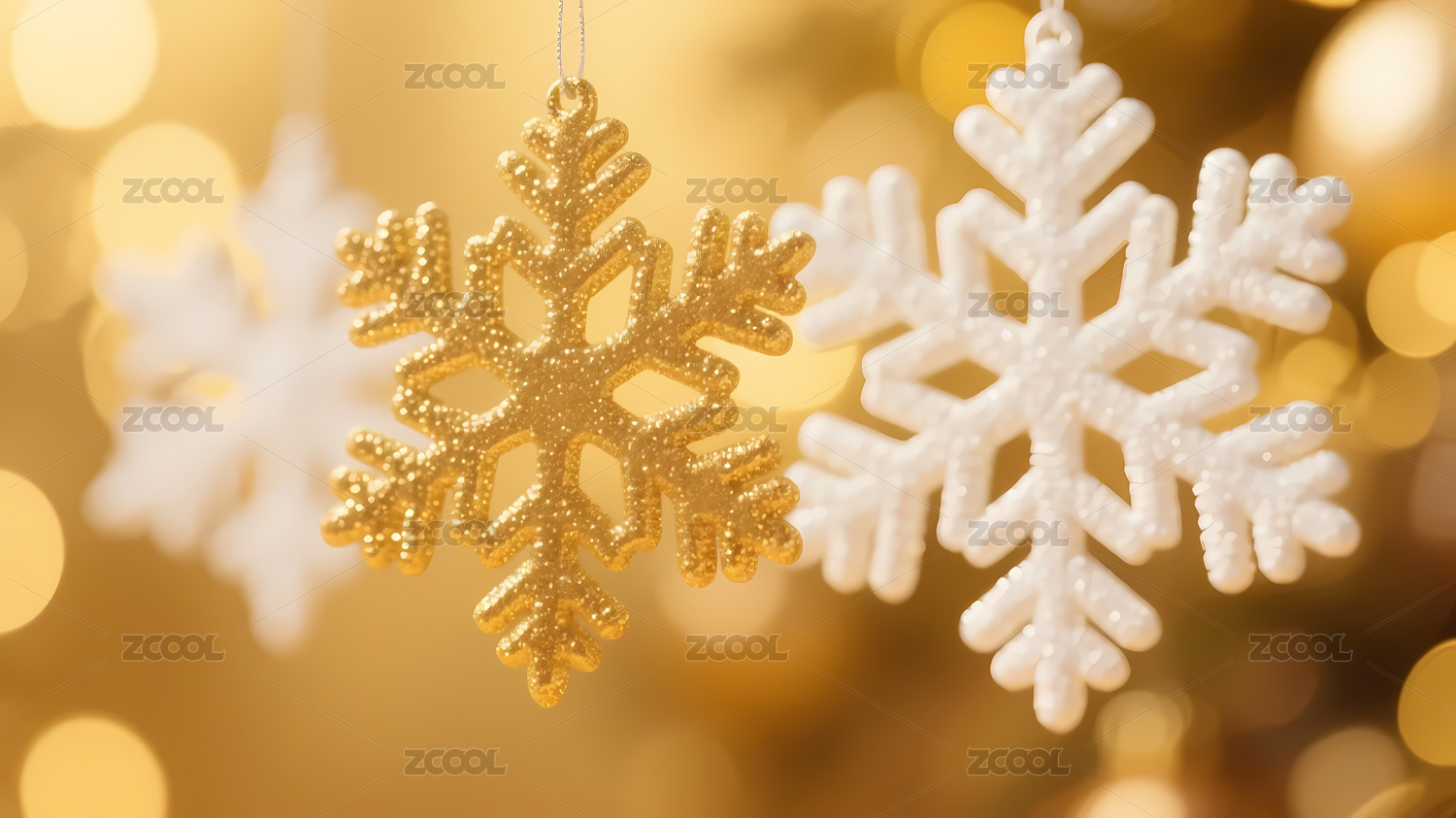 金色雪花吊饰与节日氛围