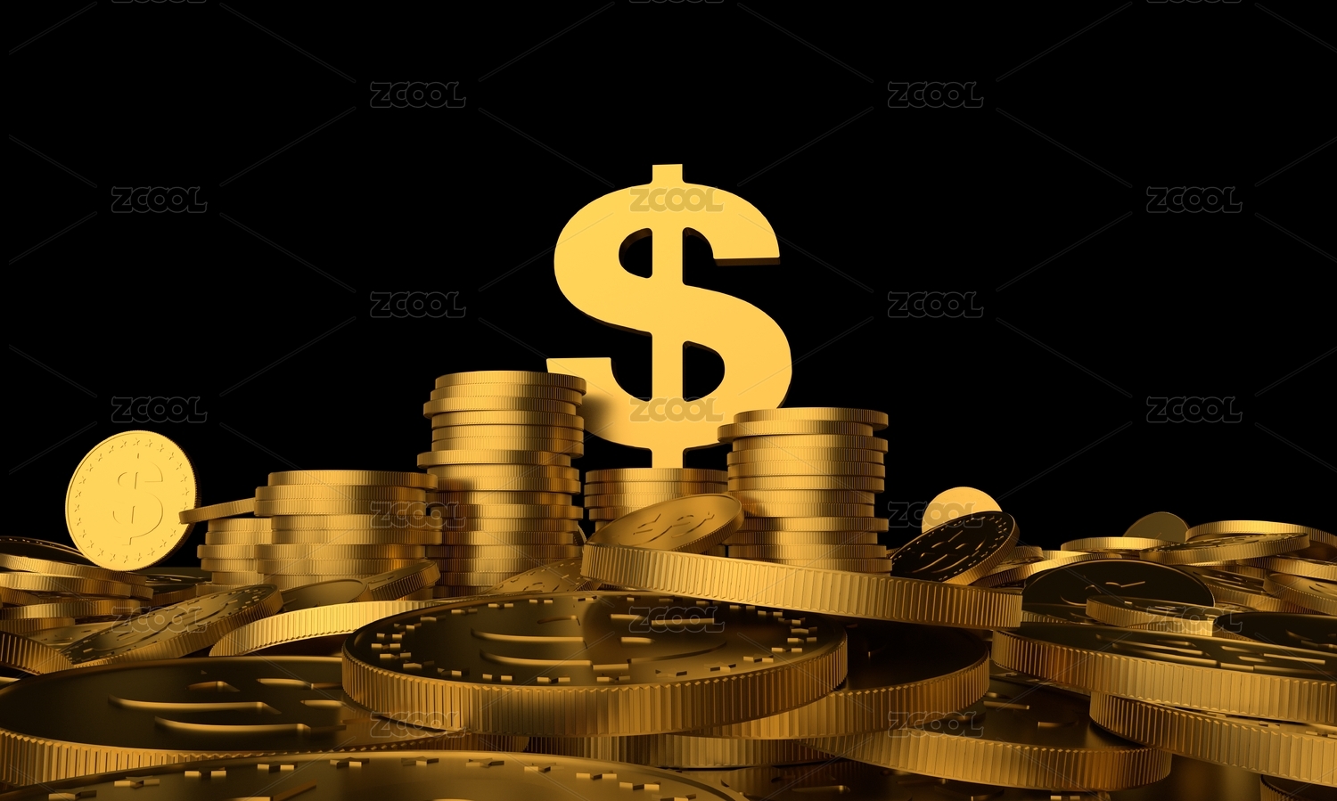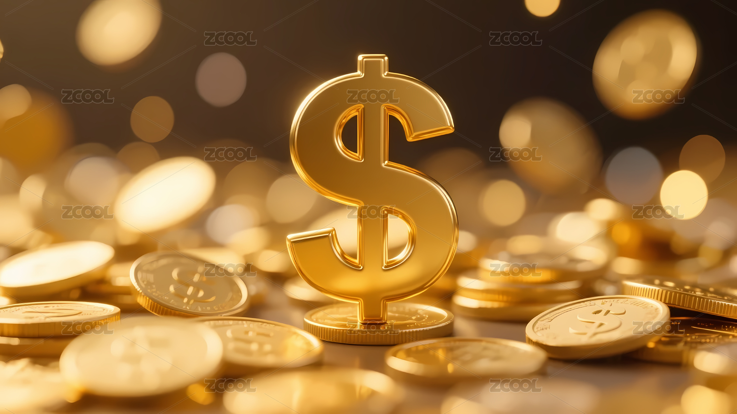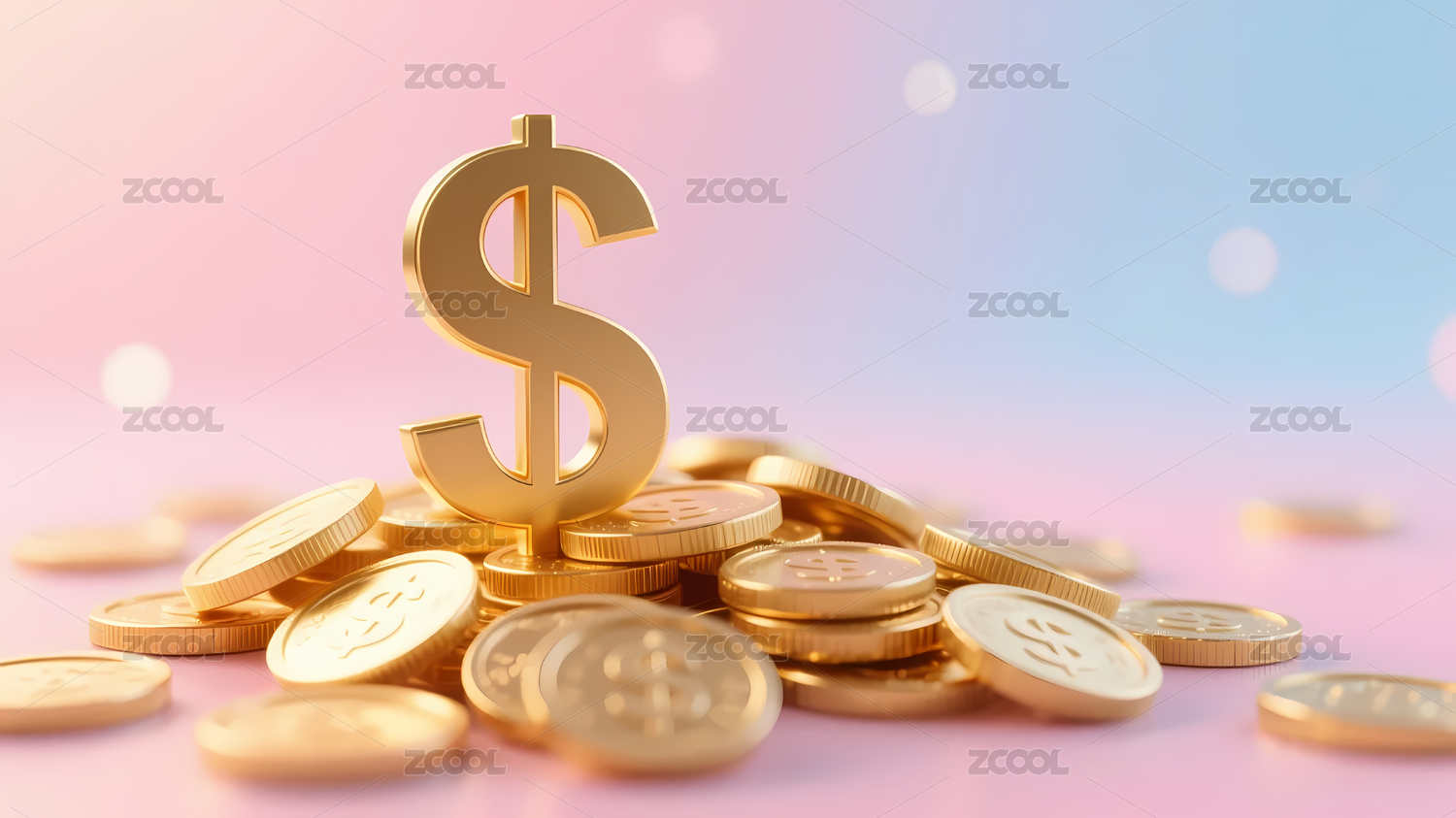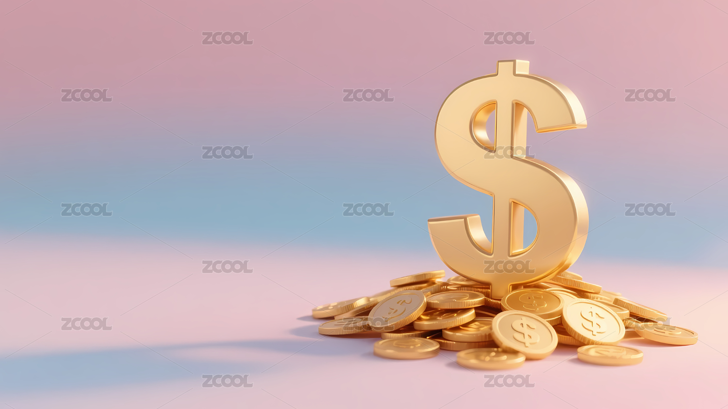蓝色,金色,渐变,粉色,现代,符号,美元符号,金币,堆积