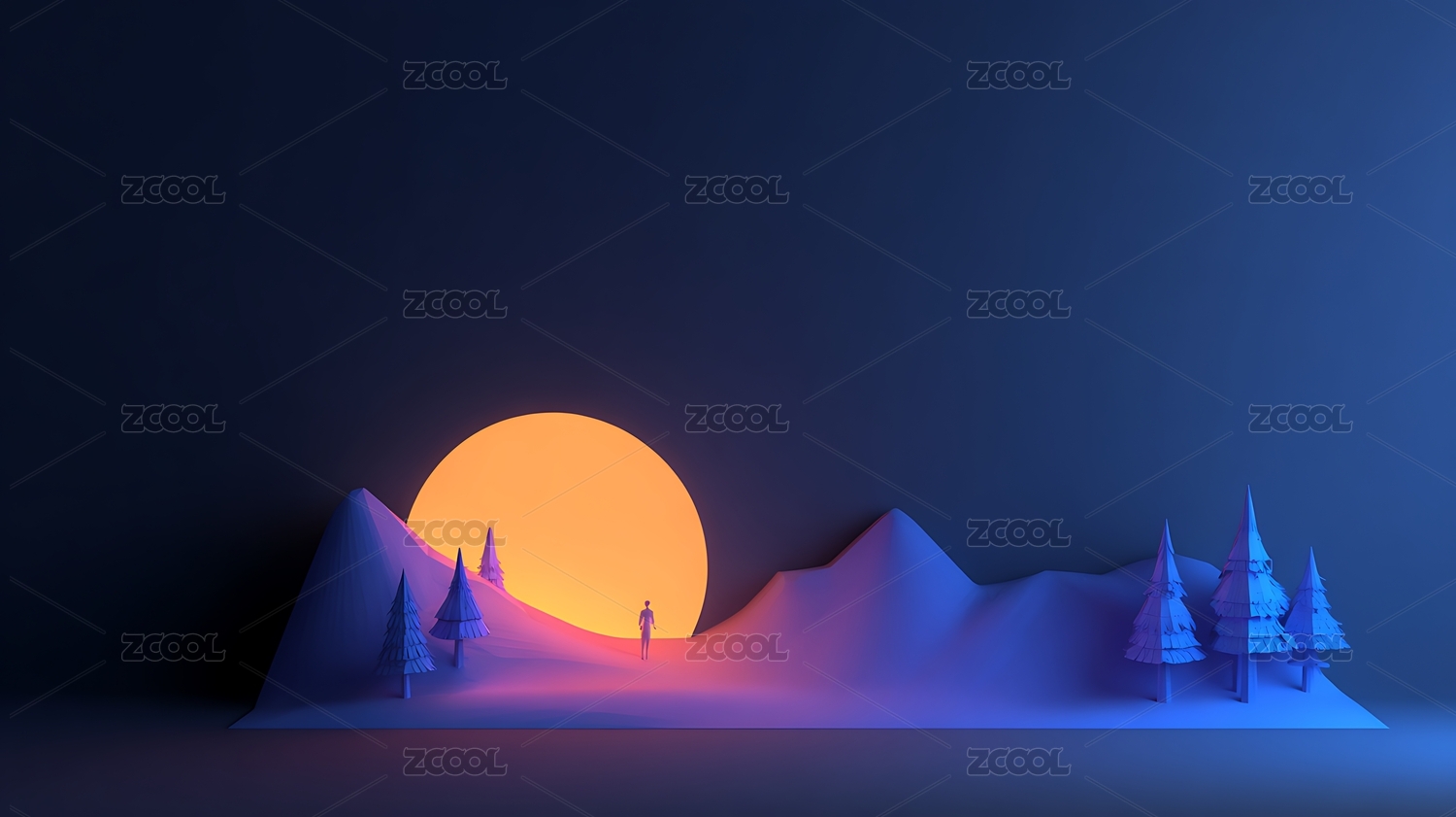 树木,天空,山峰,寒冷,紫色,山脉,松树,落日,夕阳,蓝色
