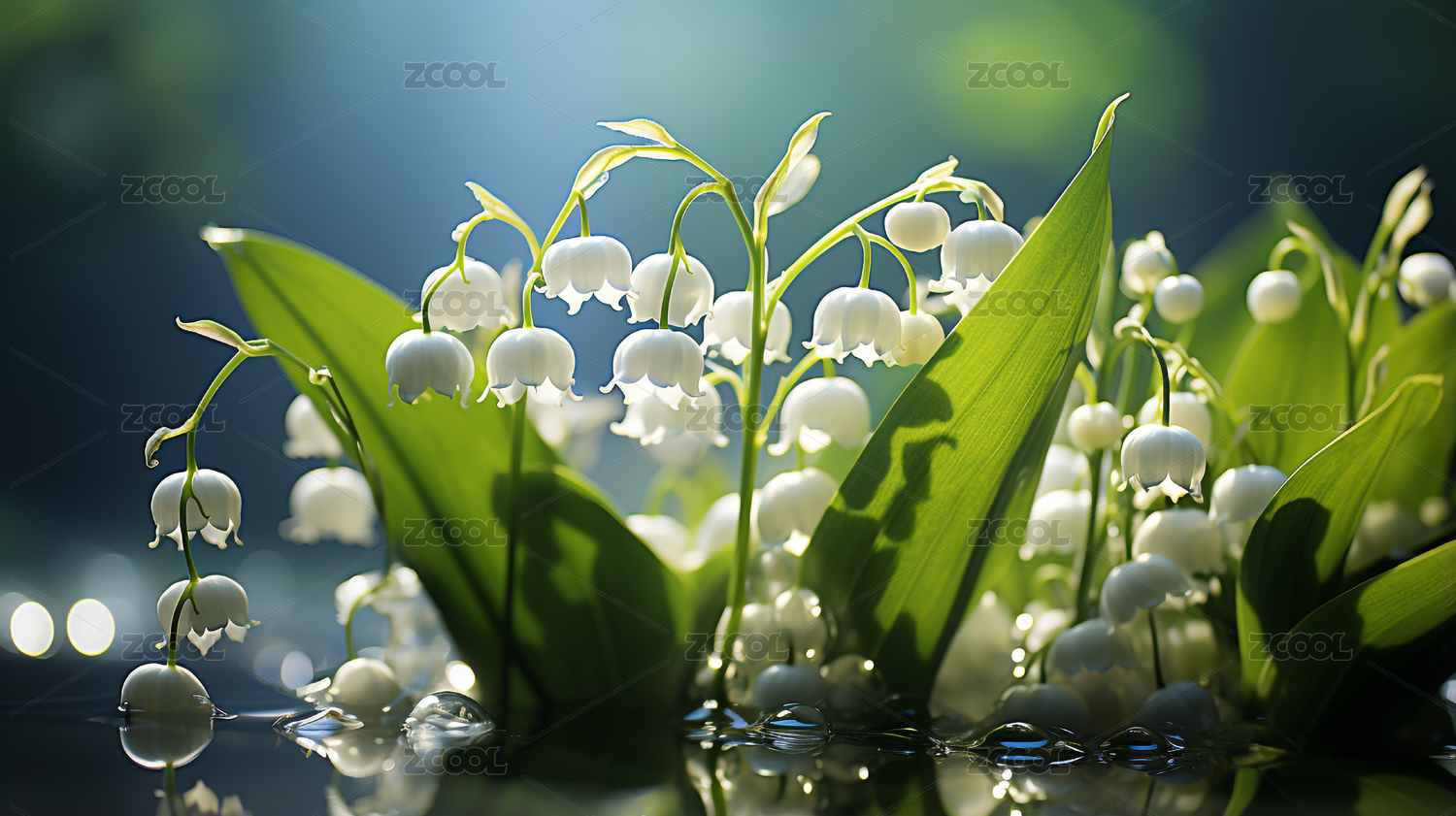 铃兰花,白色,花朵,绿色,叶子,植物,清新,自然,花卉,春天