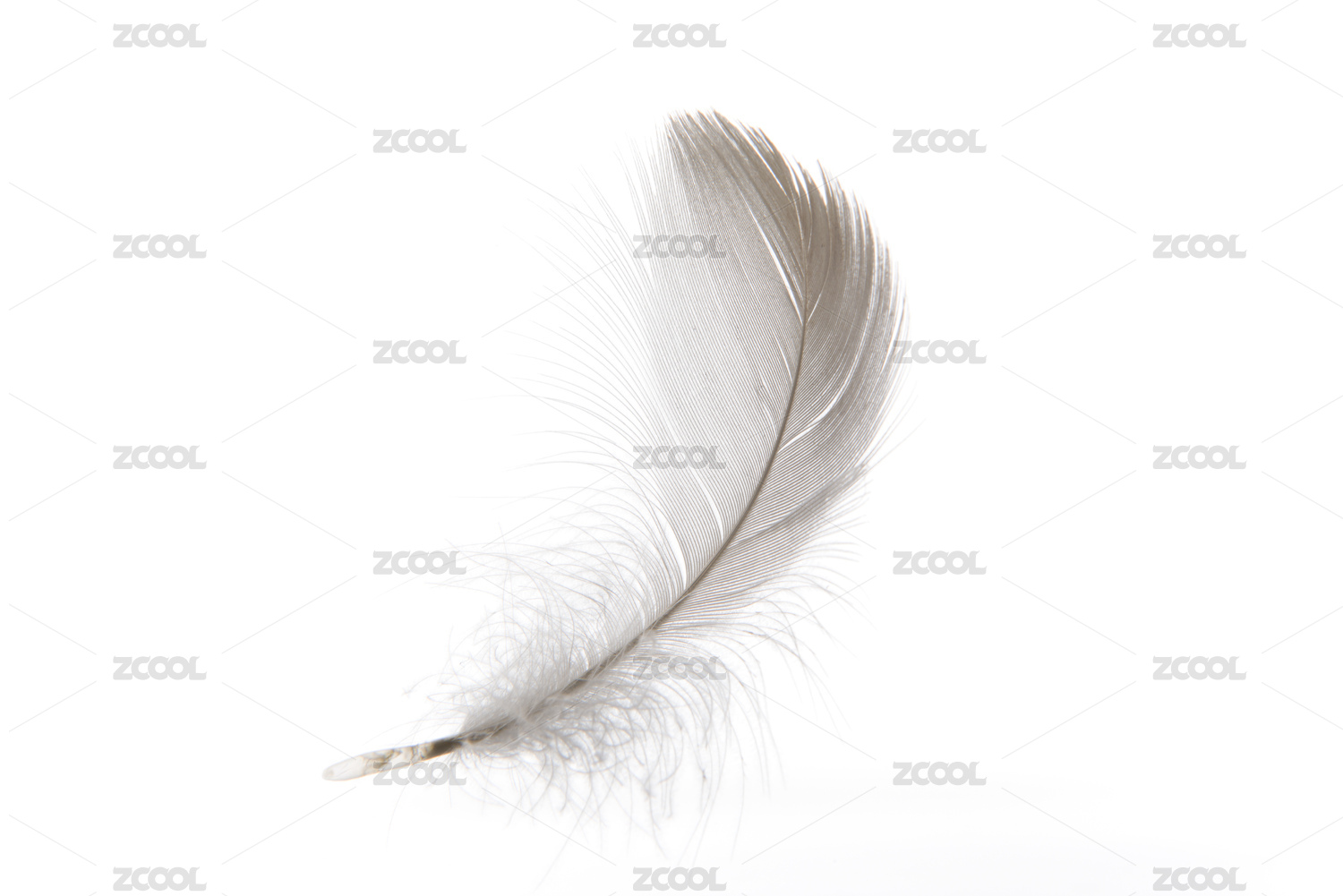 一个飘落的白色羽毛和白色背景