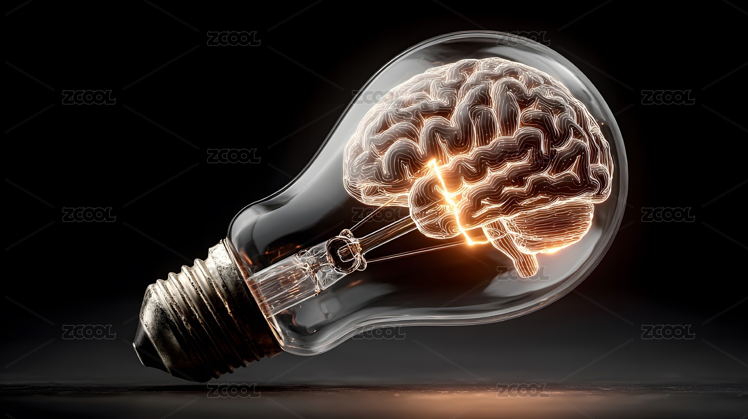 蓝色,黄色,图案,科技,深色,光点,灯泡,脑,大脑,创意