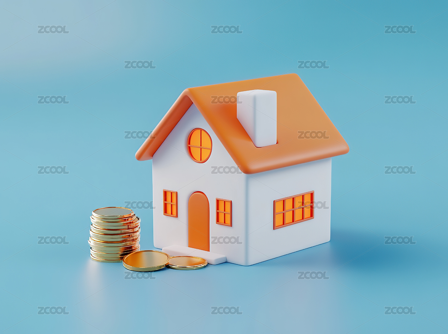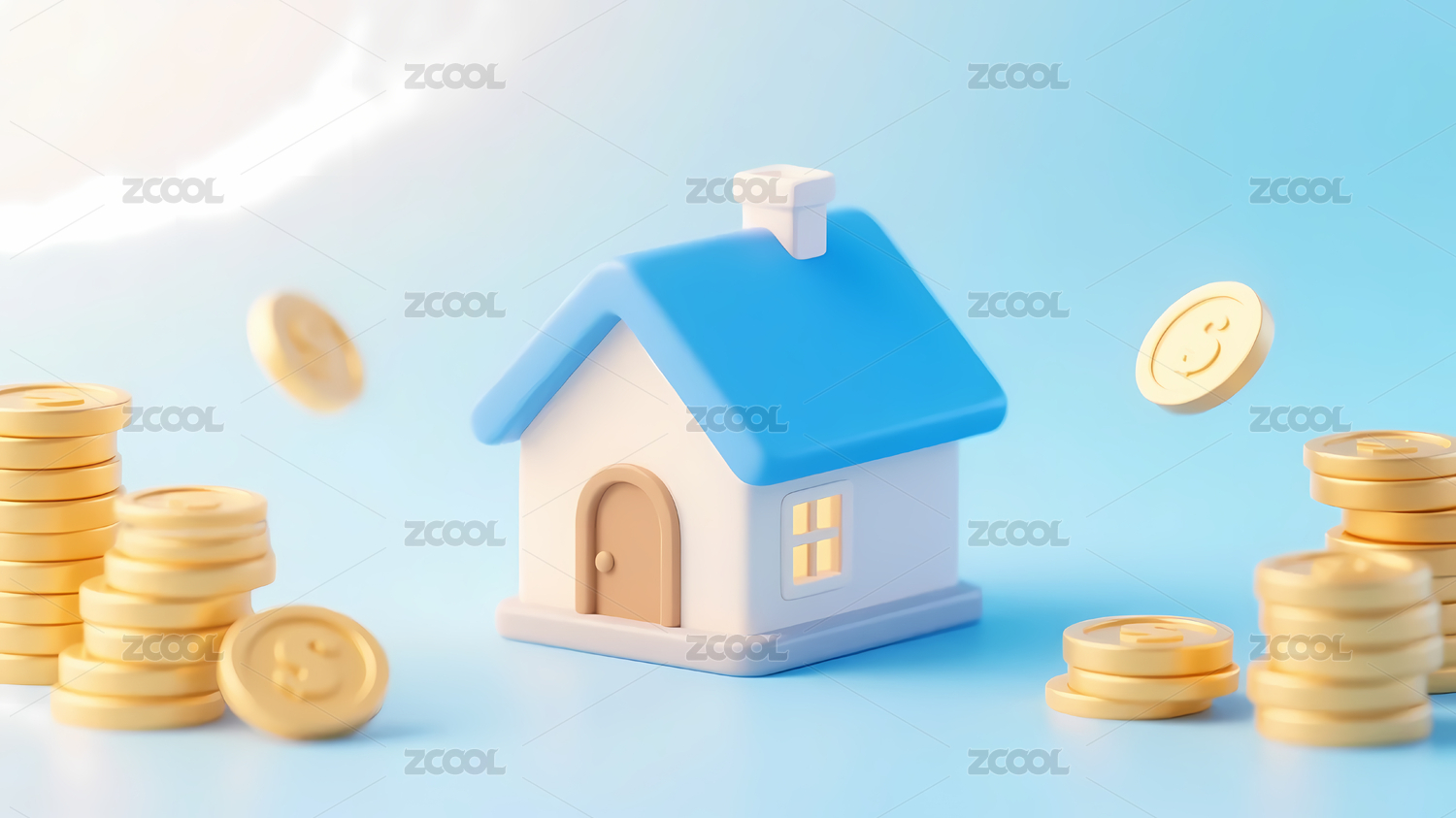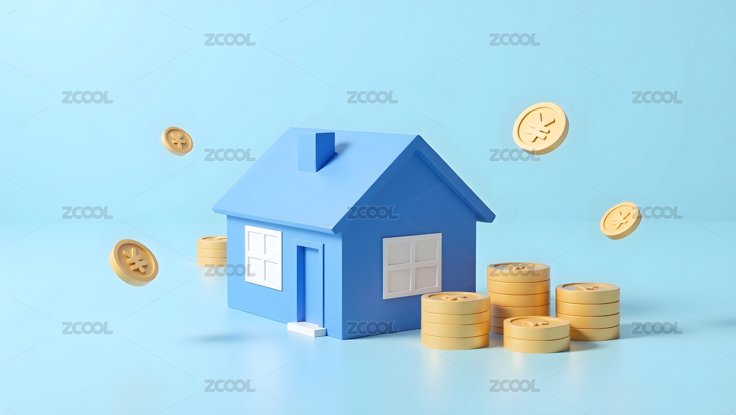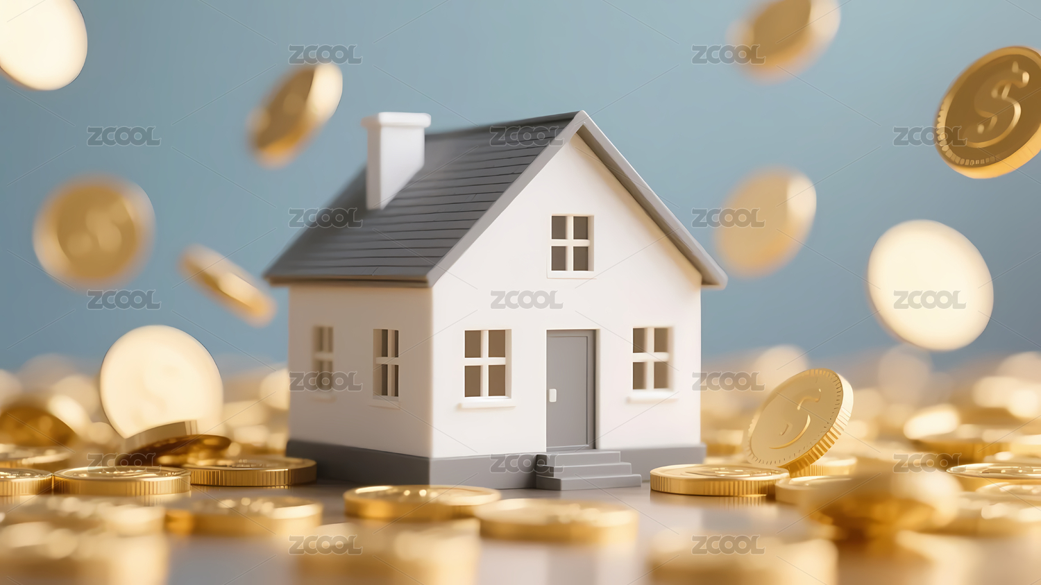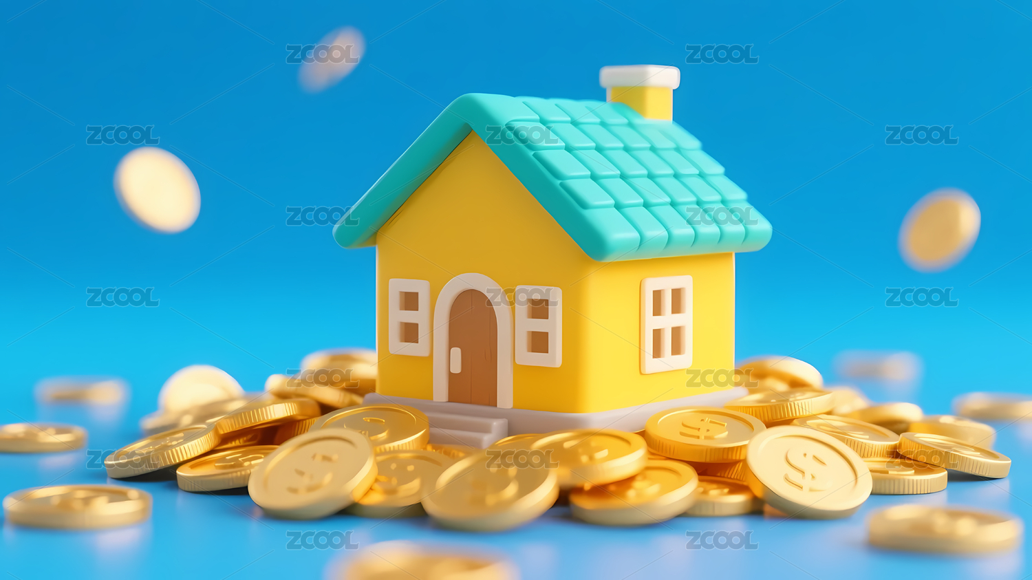 金色,小房子,蓝色,景象,城市,财富,屋顶,金币,飞舞,房产