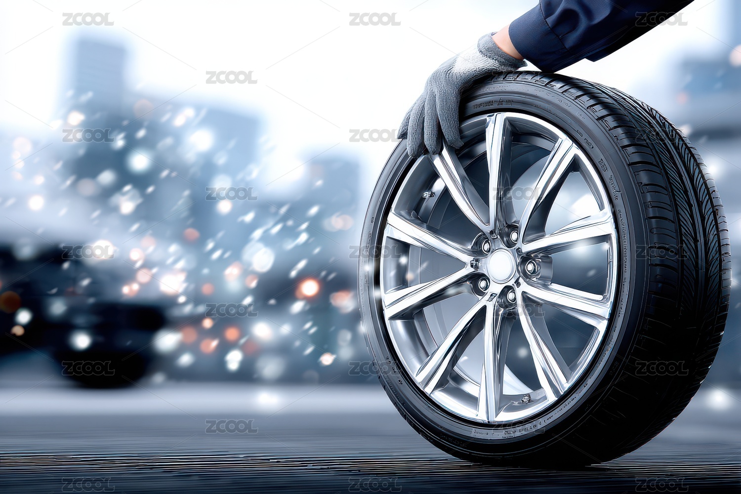 雨天夜晚汽车轮胎特写车辆维修服务广告背景