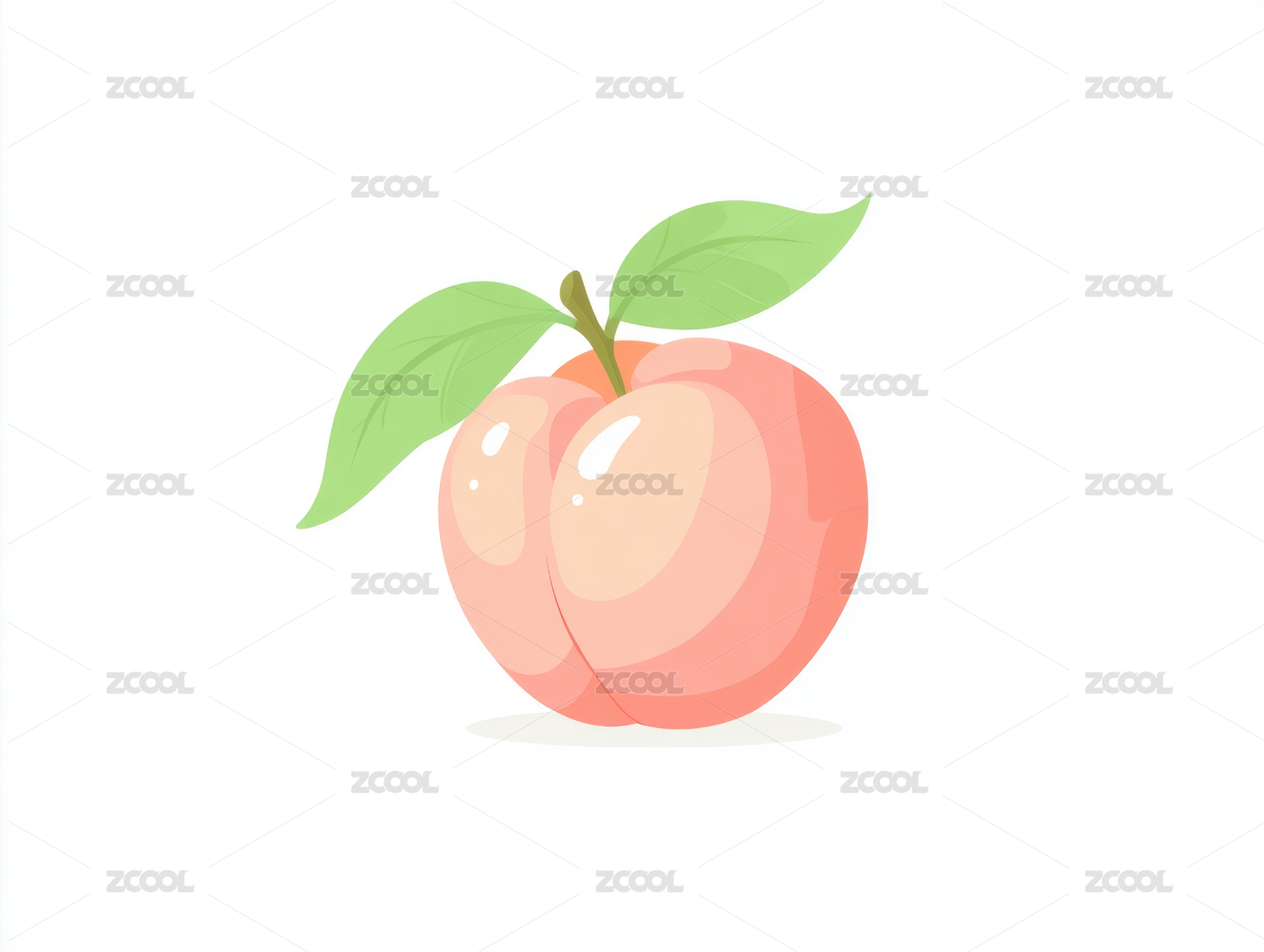 桃子,插画,水果,新鲜,绿叶,果肉,可爱,设计,平面