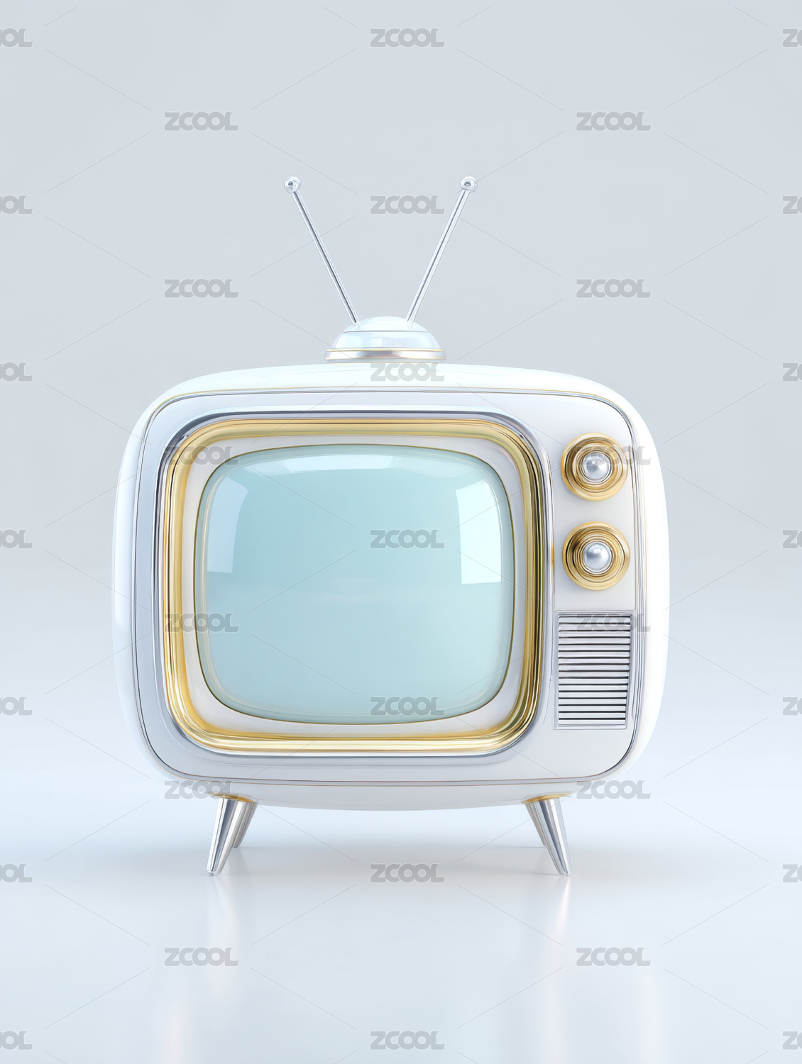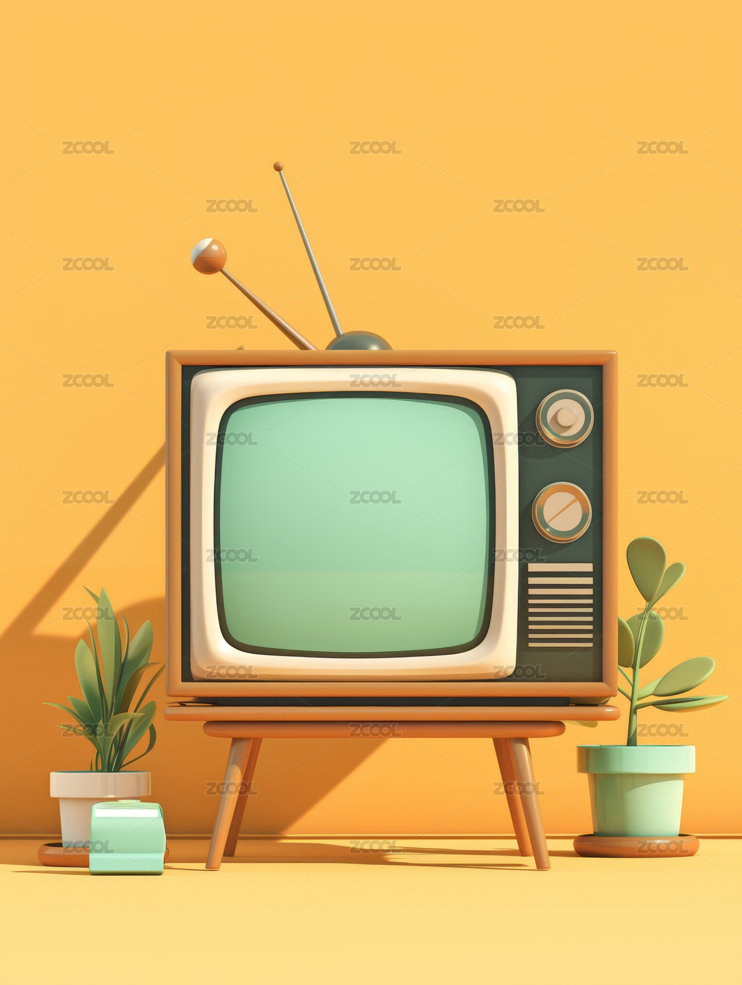 电视机,复古,屏幕,天线,按钮,黄色,白色,简约,设计