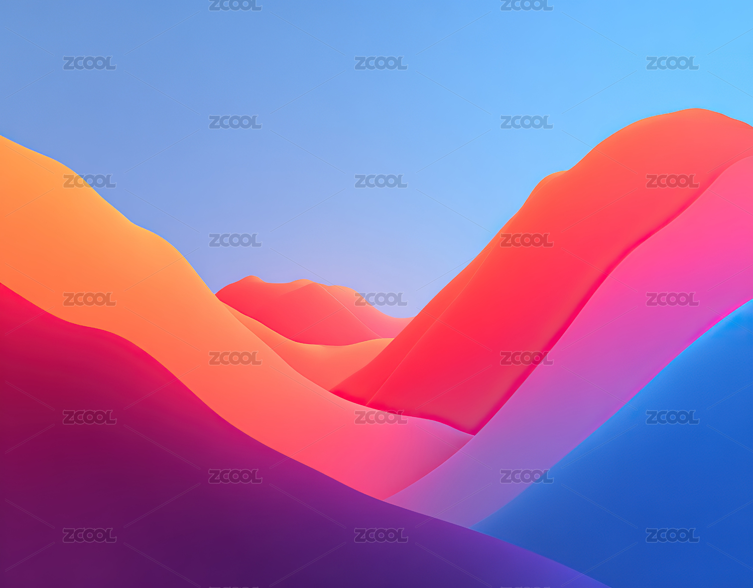 橙蓝波浪曲线构成的渐变效果