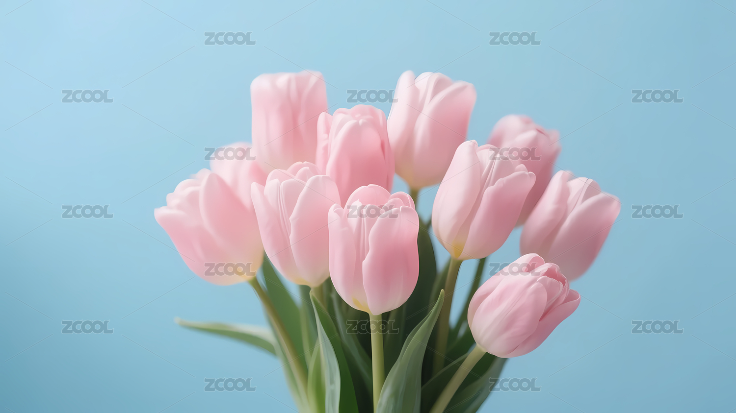 斑斓郁金香浅蓝背景