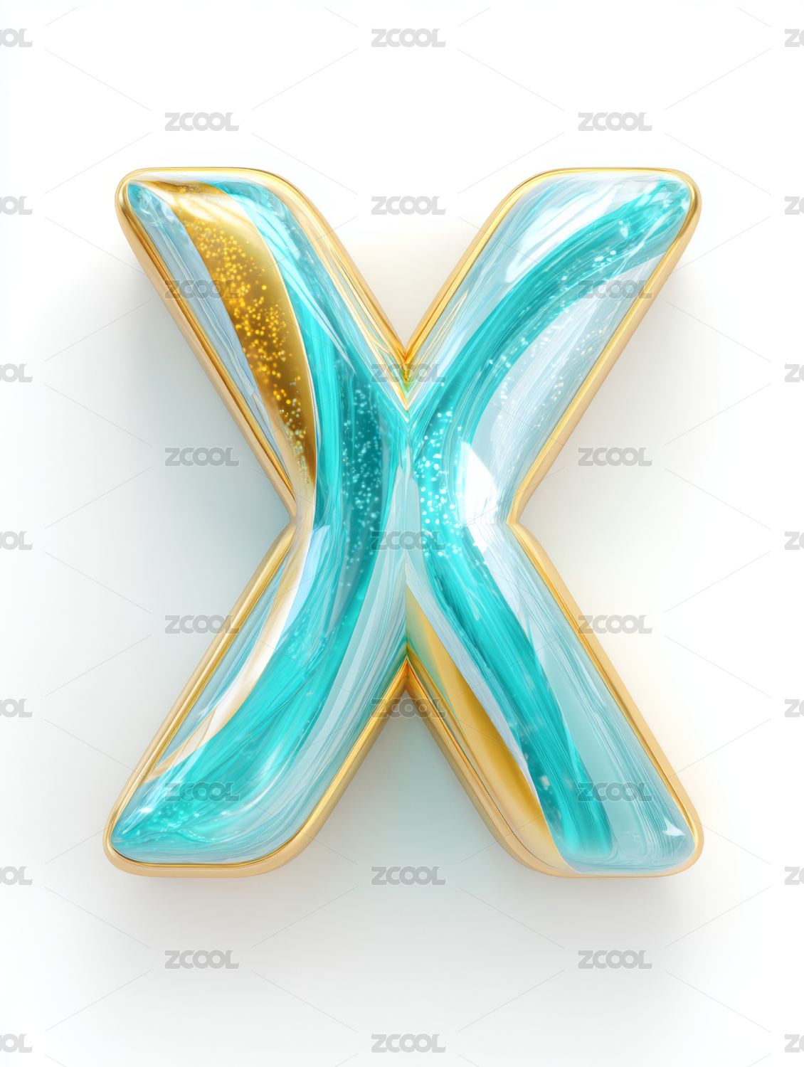 字母X,金色,边框,蓝色,填充,立体,效果,光泽感,设计,元素