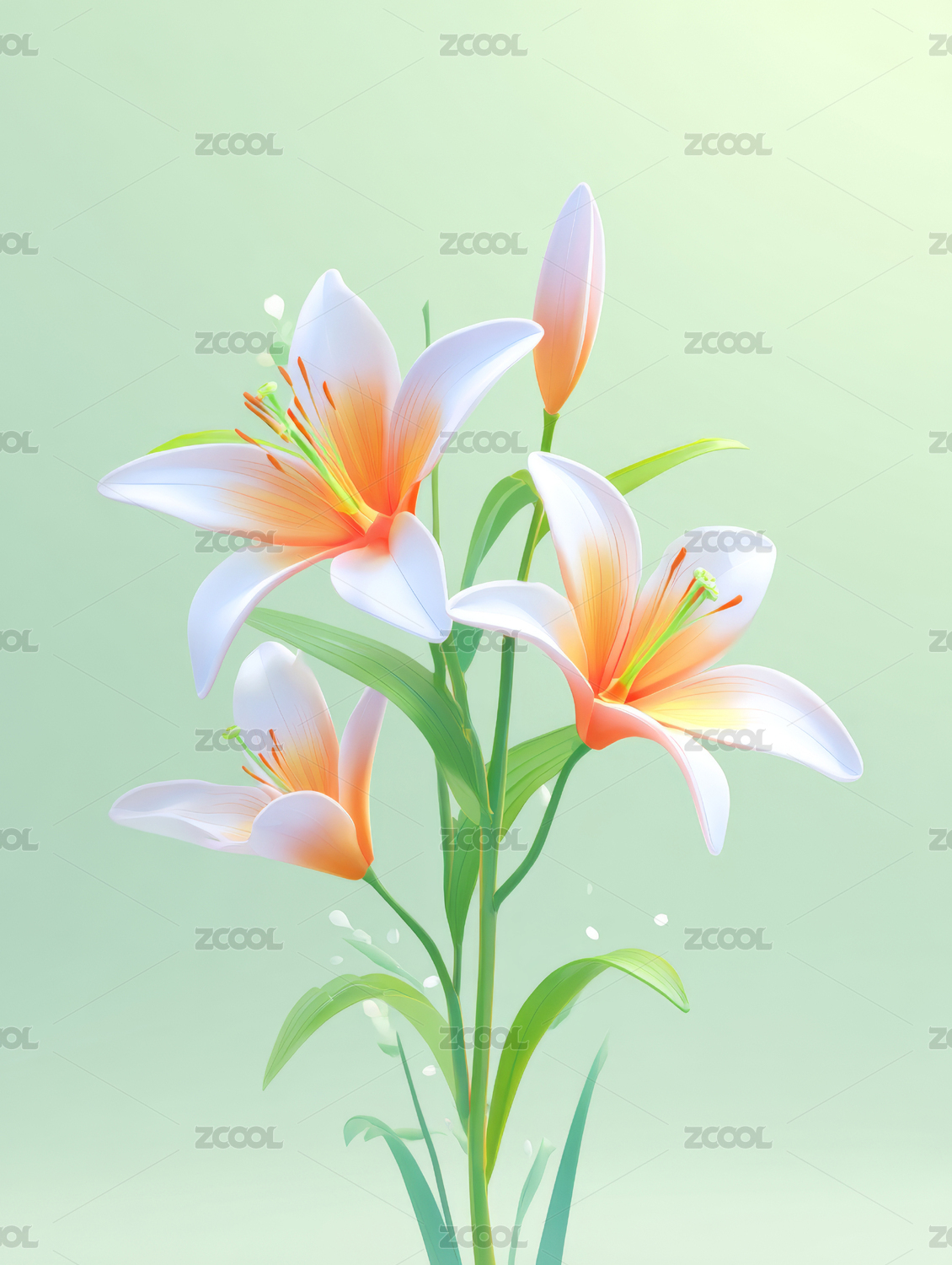 百合花,粉色,花瓣,绿叶,花蕊,植物,自然,绽放
