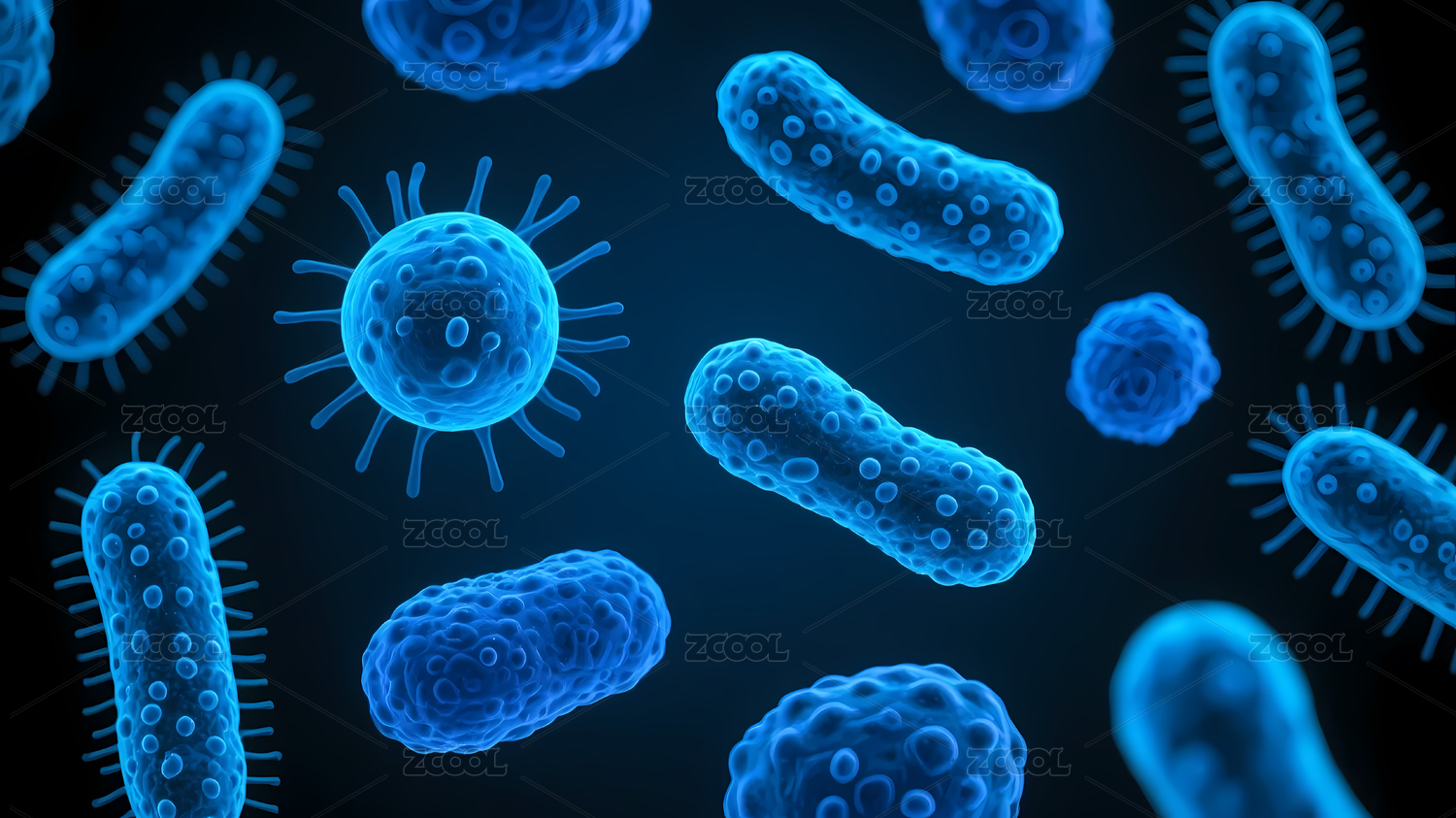 蓝色细菌形态深蓝背景