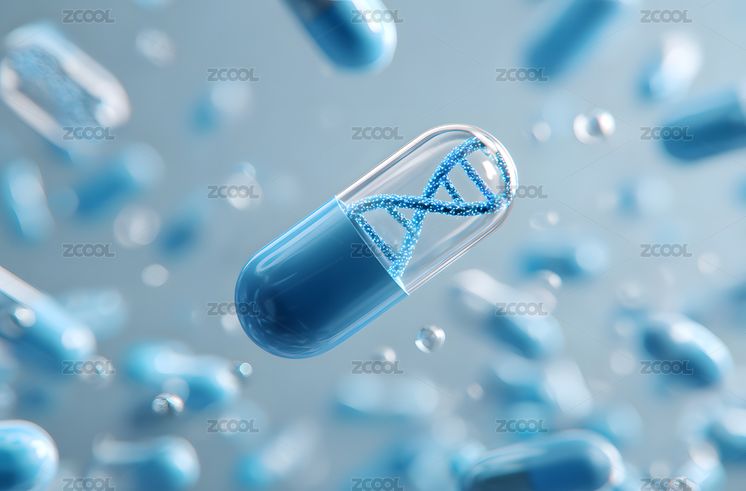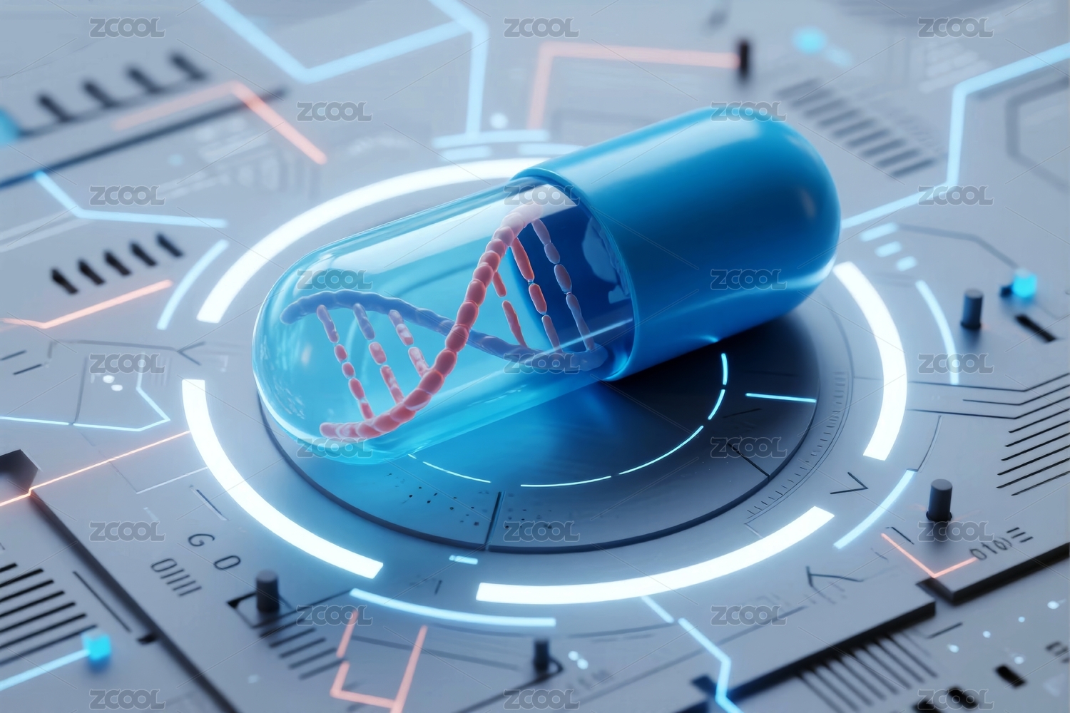 蓝色商务科技医疗胶囊DNA基因链主视觉
