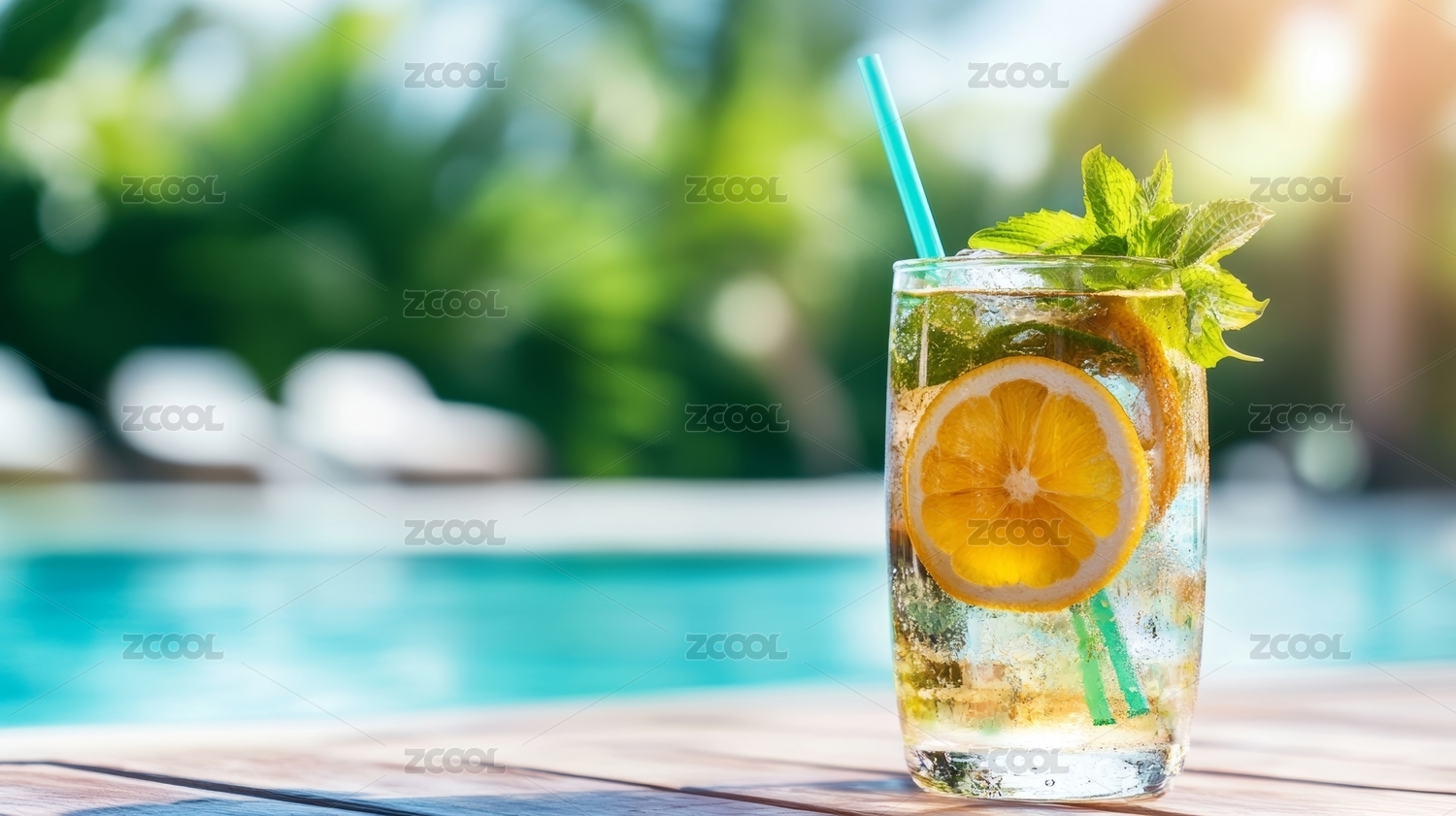 鸡尾酒,饮品,柑橘,冰块,薄荷,泳池,夏日,清凉,度假,休闲
