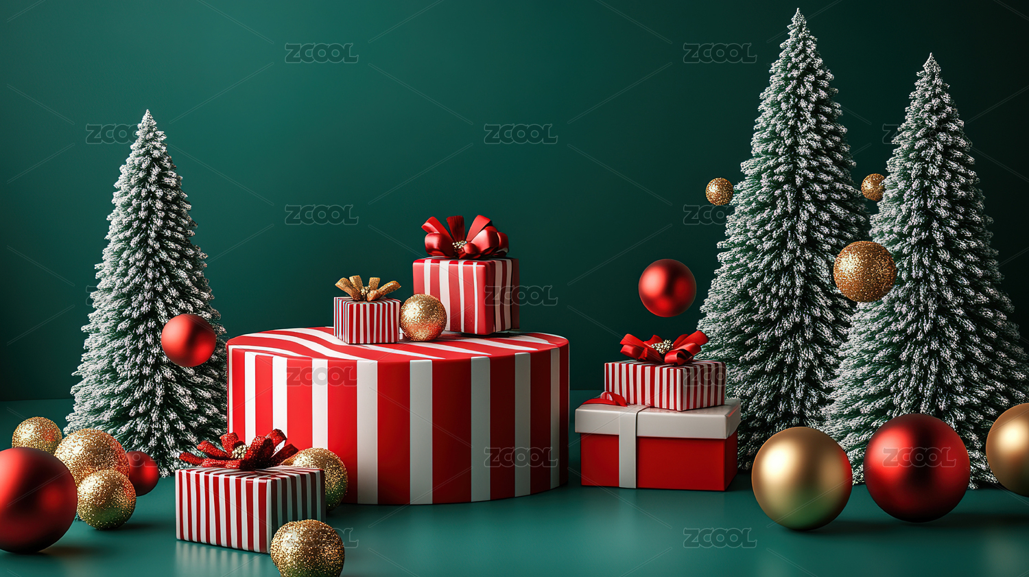 圣诞节,礼物,装饰,节日,庆祝,绿色,红色,金色,松树枝,星星