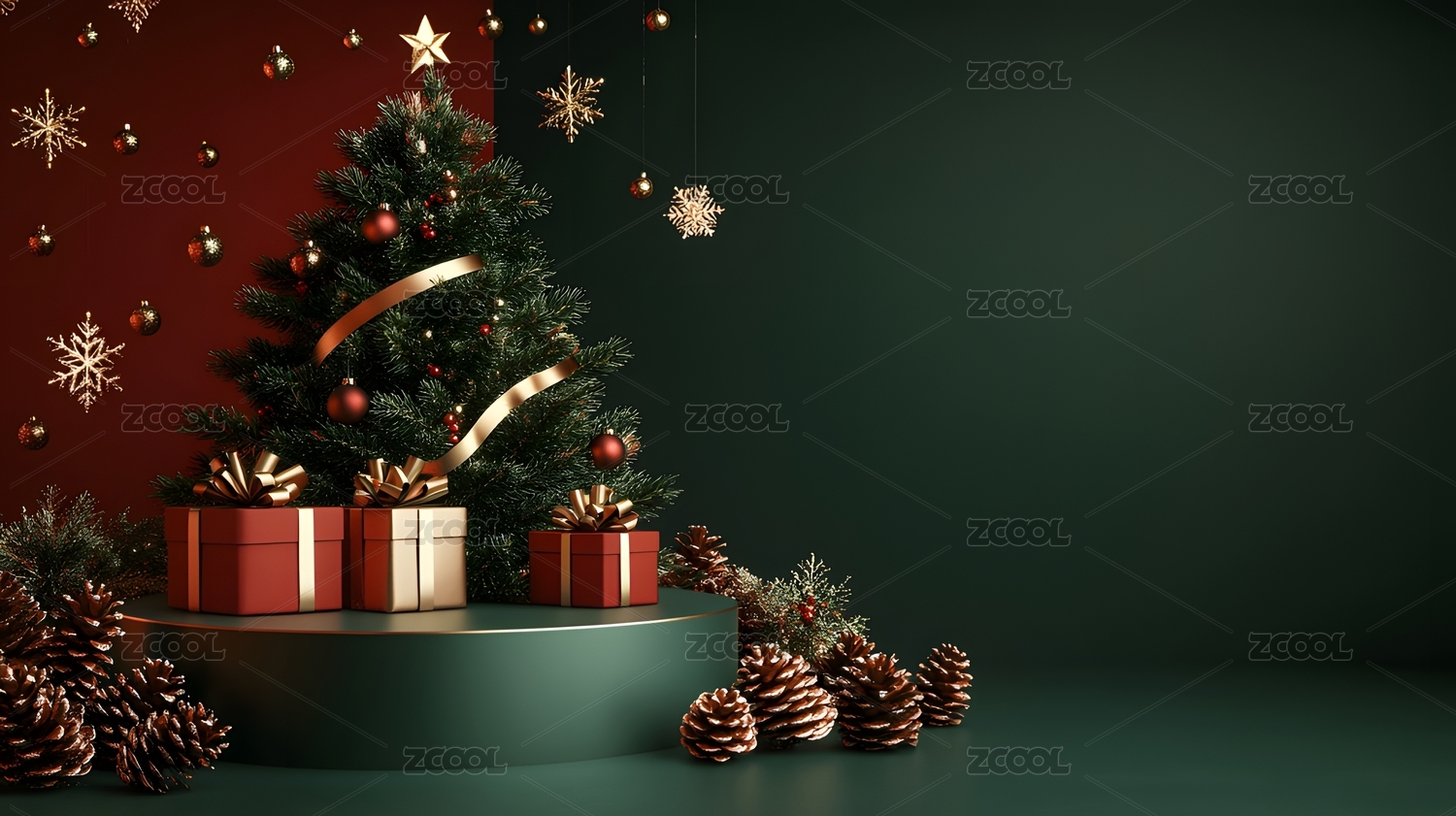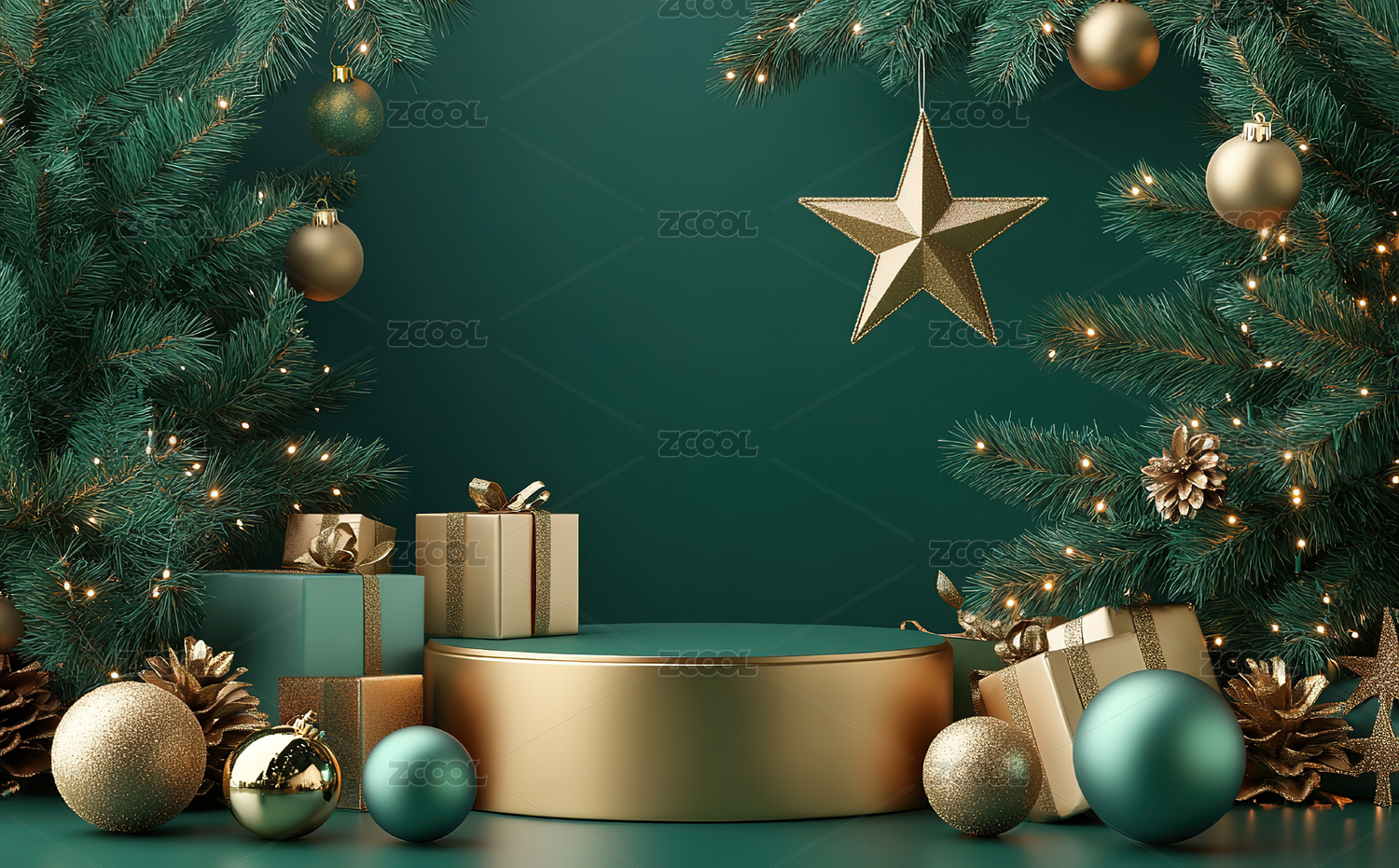 圣诞节,礼物,装饰,节日,庆祝,绿色,红色,金色,松树枝,星星